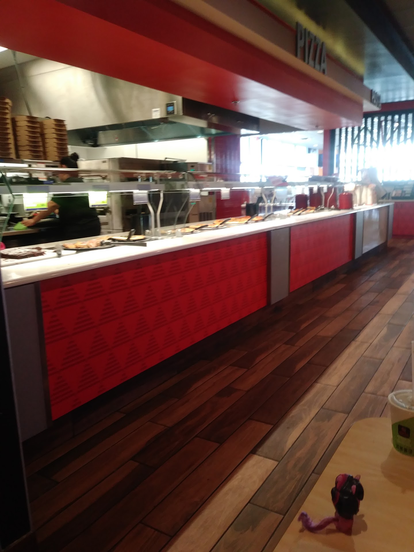 Read moreI am a regular visitor and order-er for school functions and work. This location has drastically decreased in service and cleanliness in the last 6-12 months. The restaurant was @ 1/3 full on this visit Sat. 4-6-19 at 6pm. We waited 2-3 min for someone to greet and take our order. The salad bar was missing several items, dressings were not all labeled and bottles were dirty. Beverage bar had no ice except the pile that was all over the counter. The floor was filthy-debris around many tables and people actually had to walk through garbage to sit in the booths. Except for a few table tops, no attempt was made to clean during the 40 min of our visit. Request for cheese pizza went unfilled for 10 minutes. There was no Parmesan cheese in the only available container on the counter and and the container was dirty. What happened to the containers on the table or the packets of cheese and peppers? My prior visit was on a Saturday @ 3 weeks ago as they opened. Booths were not clean, the service bar had garbage around the holes and backsplash and the floor appeared swept but not mopped. No night cleaners?? Lack of cleanliness on the last 2 visits now makes me wonder the cleanliness of food prep. Where are the managers that used to be visible, keeping the restaurant clean and taking care of customers? Much to my dismay, I will for sure try another...
