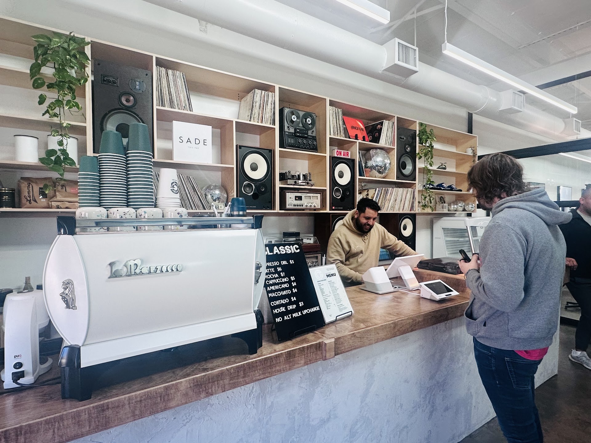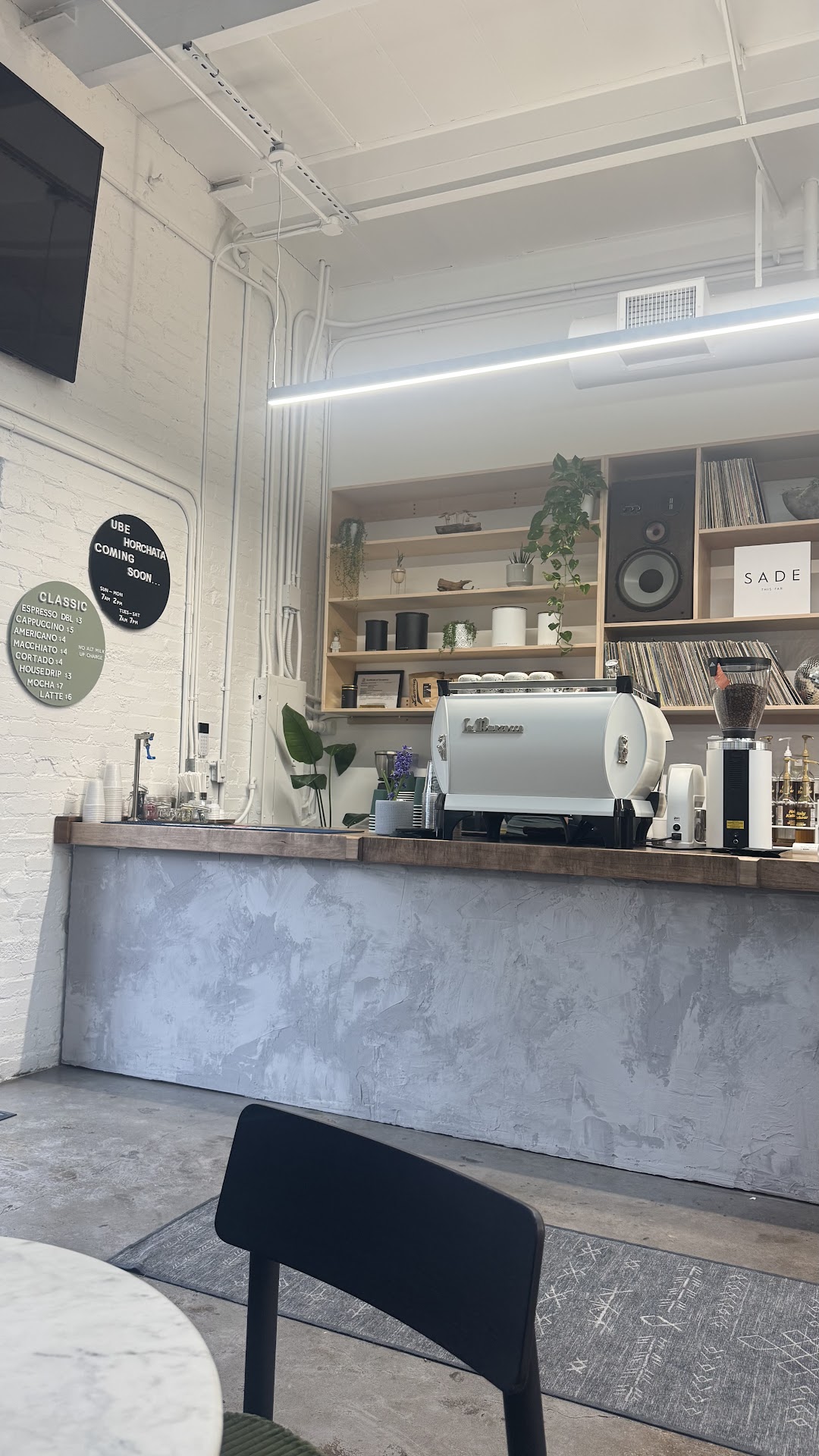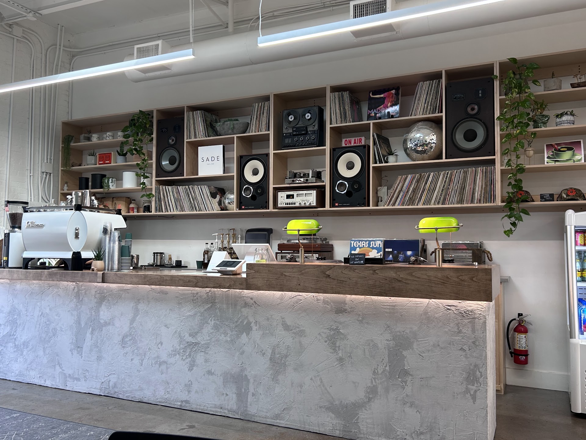 This is a nice addition to the east Dallas neighborhood. A new café is something I will never get tired of. This one in particular is very unique given the interior and design of the space. When you walk in, it is a bit confusing because there is a salon in the back. It makes you wonder if it’s there for aesthetics and additional seating for the café but it’s definitely a salon space so be weary. Aside from that the decor of the café itself is my type of vibe with vinyls surrounding the back wall. You offered a few tables in the café for chatting with friends reading or just chilling.
