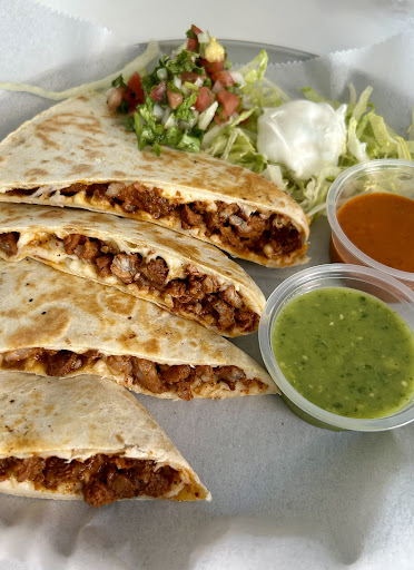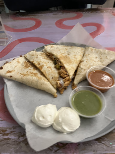 Not an extensive menu, but probably just right for a food truck. Headlined by street tacos, tortas, quesadillas, and burritos. The quesadillas and burrito that I ordered came with green and red sauces. Both salsas had a little kick but not overpowering.