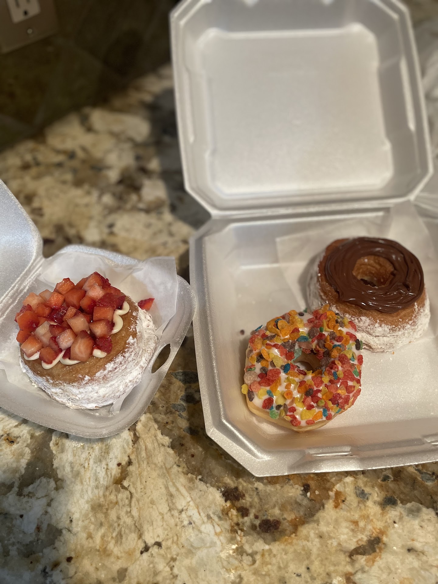 Ā Ā Ā Read moreWent by here the other day on a whim because they were open later than my regular donut shop. I made it just before close and ordered regular glazed, but was eyeing the cronut as I had never had one before. After I paid, the owner ended up giving me the cronut I was eyeing to try. It had berries on top like a La Madeleine fruit tart and OMG! If was AMAZING! Not too sweet, it had some sort of whip cream on top, which is usually not my thing, but thia was different and so delicious with the fruit and cronut flavors. A must try. And I will...