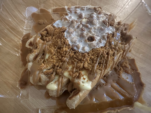 Was excited to try this new crepe place after lunch with friends. We ordered a biscoff cookie butter crepe and a berry cheesecake crepe along with a biscoff rolled ice cream and a mango tango rolled ice cream. The portions were huge, definitely recommend sharing. I really liked the biscoff crepe and rolled ice cream but we had some problems with service. The worker first gave us a peanut butter cup rolled ice cream instead of biscoff. This could have potentially been dangerous because my friend who ordered it is allergic to tree nuts but thankfully not peanuts. She apologized and redid the order but our mango tango was also mainly strawberry instead of mango. The peanut butter she let us keep but was so peanuty we just ate a couple scoops. English wasn't her first language and maybe she was not as familiar with the recipes since it's a newer shop or because it was new, but it did dampen our experience. The cost too was a bit painful. $9 for rolled ice cream, $13 for a crepe so almost as expensive as our sit down LUNCH that we had eaten right before. Though again the portions were big. Overall, I still enjoyed it. Would come again for the biscoff but definitely...