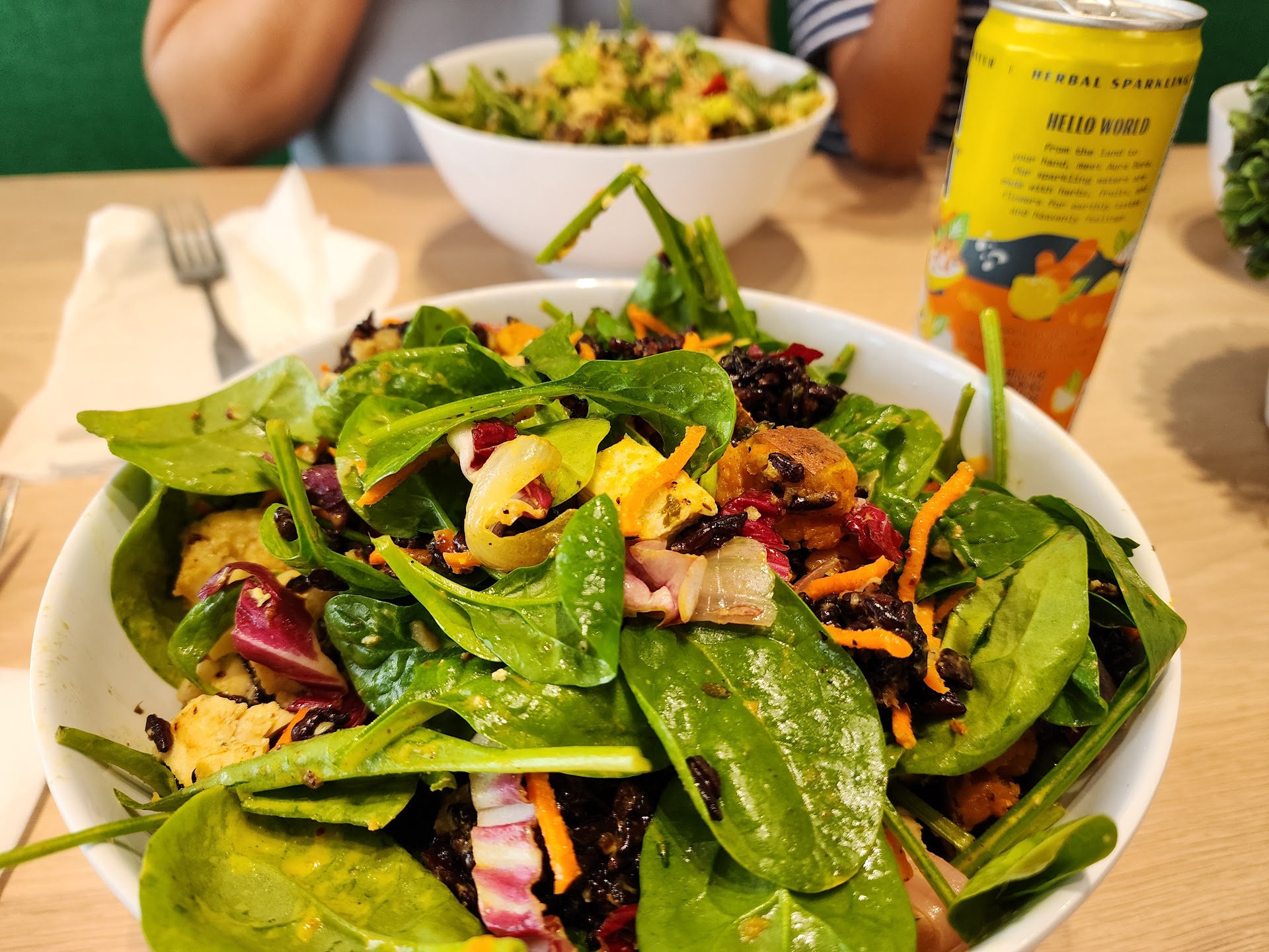 Thanks to his help, I created the perfect Seoul Bowl combo with fresh greens, quinoa, shredded carrots, mushrooms, and two delicious sauces. Everything was fresh and flavorful. I paired it with a refreshing cold-pressed juice, and it was the perfect meal thatâs light, energizing, and super satisfying.