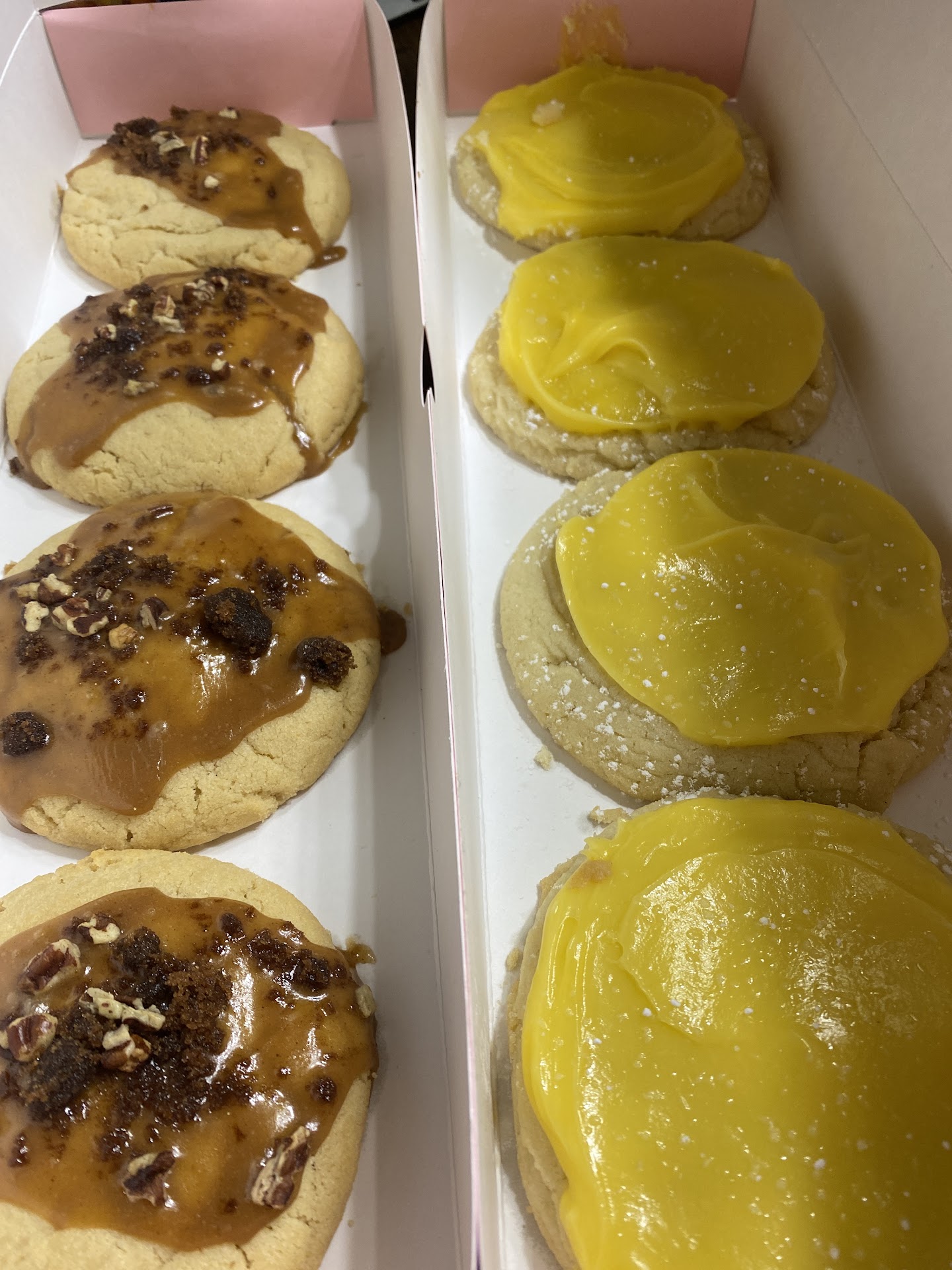 Read more1st timer here. I learned of this company via ig influencers. I didn't realize how expensive they are. 5 PER cookie ... for O N E cookie ... is too rich for my pocket book. With that said I treated myself this one time. I didn't go on a day that had the cookies I really wanted to try but I proceeded anyway. Cake batter was pretty good but the raspberry lemonade was too sweet. Way too much frosting if it's gonna be that sweet. I would like to make a suggestion if the owner should stumble upon my review. Why not offer 1) smaller cookie at a 2 for 5 price so those that don't want a humongous cookie can enjoy a smaller one and not have to half it with someone 2) for those cookies that are frosted ...offer a version with a thinner layer of frosting or a drizzle like you see on a toaster strudel for maybe 50 cent less or something and use the regular item name ... and for those that like the thick layers of frosting you could charge the current price and call it something like raspberry lemonade delite or raspberry lemonade supreme. I don't know lol I'm sure you have marketing interns or somebody for that type of thing. I just feel like you'd make even more money by expanding your customer base to those that aren't into eating as much and don't like as much sugary frosting cause wow geez and sheesh lol my face immediately...