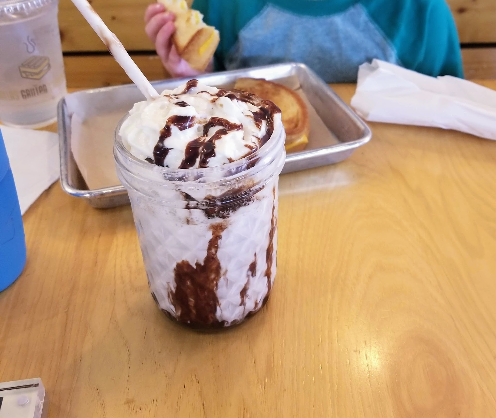 My daughter had a classic grilled cheese and we shared a chocolate malt shake. I had the jalapeno popper grilled cheese. I could only finish half of mine because it was pretty rich. It was a tad on the sweet side for me, I was hoping it would be spicier, but it was still delicious. My daughter ate her whole sandwich and loved it. The milkshake was delicious and it was the perfect size. The server even brought a little plastic cup so she could take what was leftover of the shake while we walked around Mockingbird station.