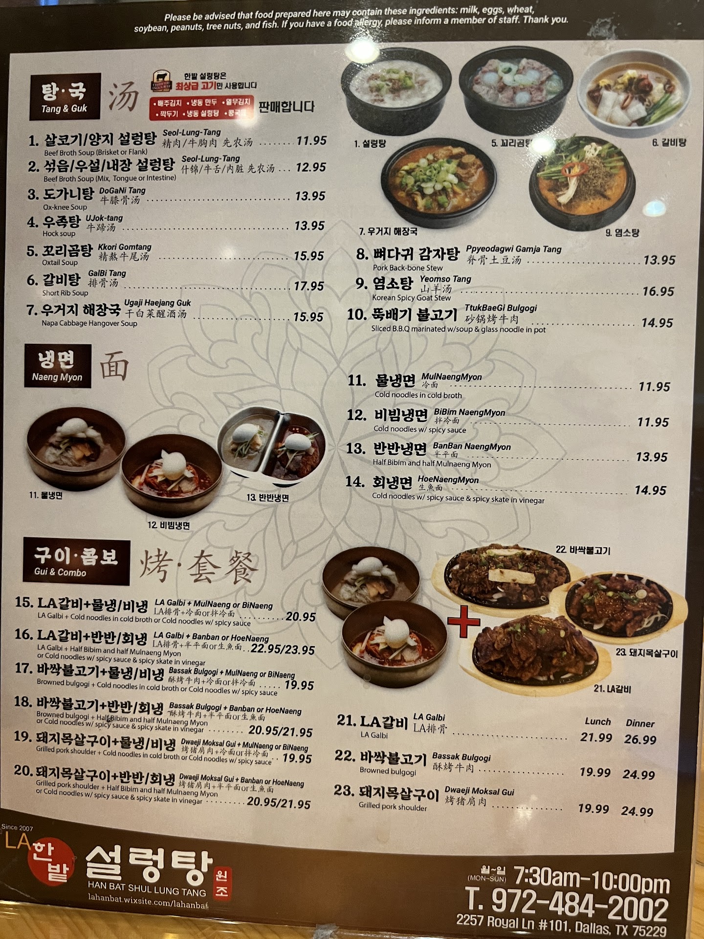 Being a long time regular coming here, my wife and I often get the soup frozen to-go for friend and family out of city. We have done this many times and know what they offer and for how much. Today, as we were packing to leave for Houston and stop by to get some frozen soup to-go. They only gave us the frozen soup only without any side dishes or rice (even the green scallions). We asked if they no longer offer the meat, kimchi, and rice with the soup to-go and they said they "NEVER" did such service. So she basically rang us each individual soup package for $11, meat on the side for $10, and $2.50 extra for the kimchi. We questioned them several more times if this was correct and they were very clear with the prices (The lady there was very rude with attitude). We leave and asked one of our friends to call and ask about their to-go soup and what they offer with it. Our friend gives us a call back saying the to-go soup come with the meat, kimchi, and rice for $13. We immediately turned around confronted them in which they REFUSE to admit to their mistake and said we NEVER asked them for extra sides...