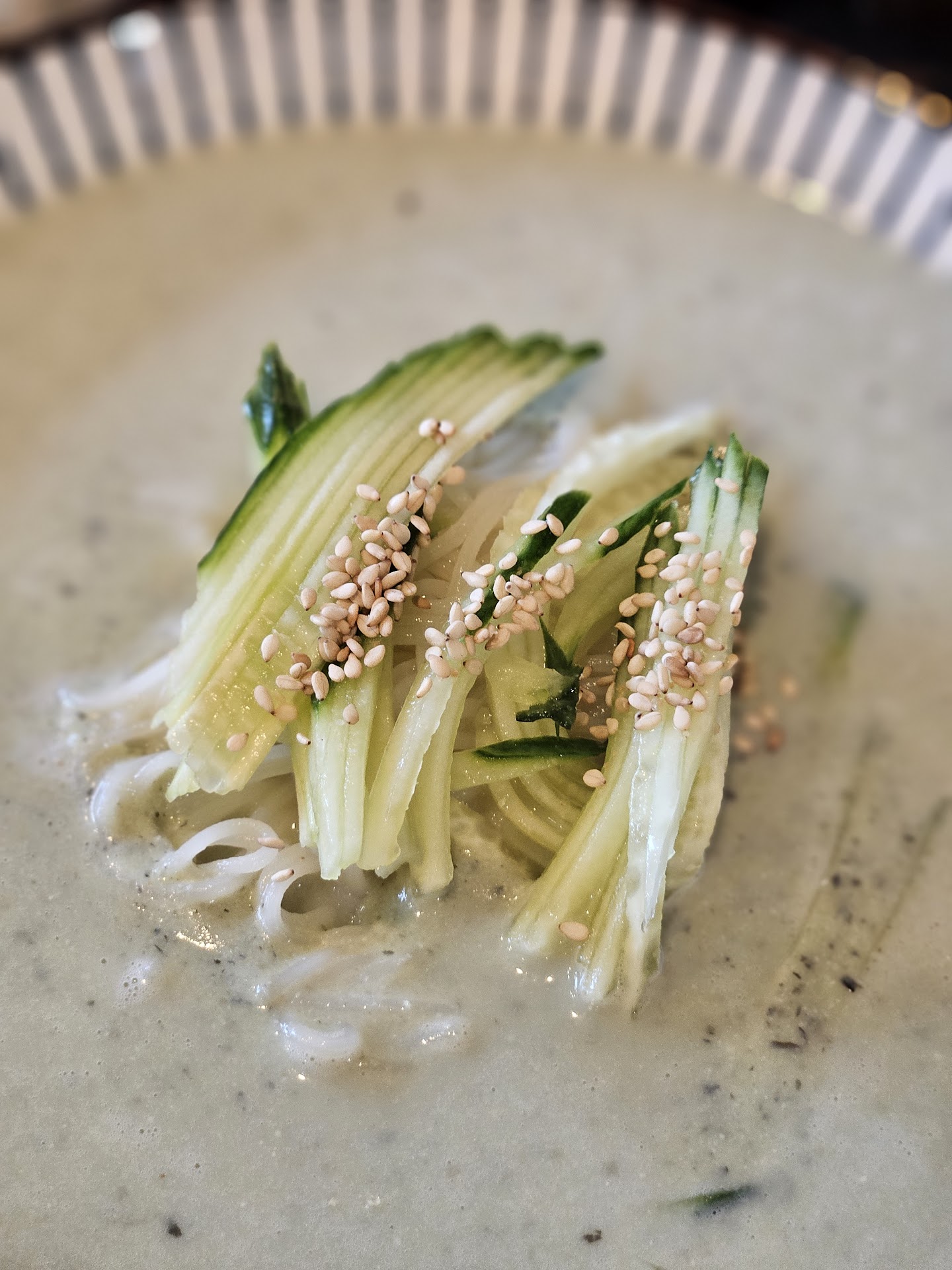 Inspired by Netflix’s hit series Culinary Class Wars, I decided to try authentic Korean food for the first time—and I was not disappointed as I discovered a local Korean restaurant celebrated for its incredible flavors and rave reviews, making it the perfect spot for newcomers to Korean cuisine; the friendly staff immediately understood my beginner status and recommended a tasting menu featuring a variety of must-try dishes, starting with fried dumplings that were uniquely crispy and bursting with flavor, followed by Tteokbokki with its chewy rice cakes and a perfectly balanced spicy, subtly sweet seafood sauce that amazed me with its texture and depth of flavor, then Gimbap, which, although reminiscent of sushi, offered a distinctly different and refreshing taste, and later a Short Rib and Japchae Combo where the tender, melt-in-your-mouth short rib was paired with crystal noodles and a delicious egg with rice that provided a satisfying mix of textures and flavors, and finally the Myeolchi Kalguksu, featuring handmade fresh noodles in a soup with a gentle seafood flavor that rounded out the meal with a comforting finish; despite the plaza’s somewhat run-down exterior, the authentic flavors and overall quality of the food make this restaurant a top recommendation for anyone looking to explore Korean cuisine and experience a genuine...