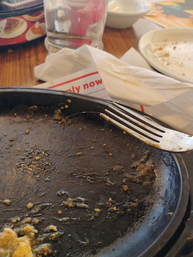 15 minutes after order, my brother gets his breakfast, it looks okay, though the eggs look plasticy. And he seems to be enjoying his meal okay, but I still await my burger, sitting there on my phone confused as to whats going on back there, eventually my server returns with the plate, timidly pushing the plate over to me like he didn't have any strength in his body, And the burger looked okay from the ouside but as I lifted the bun to put ketchup on it I realized what I got wasn't a hamburger but a series of mutilated patty fragments, some of which didnt have the cheese on top, and it wasnt that much meat despite me ordering a DOUBLE cheeseburger, might I add some of that meat didn't look fully cooked, and looked like the meat had come from somewhere else entirely, I had recieved some kind of modified frankenstien creation of a burger with insufficent amounts of meat. I was appauled by what I recieved but I was still hungry so I managed to eat the parts that looked edible, already overcome with defeat and fear that if I brought this problem up with my server, he wouldnt comprehend me, as he seemed confused about everything, I heard him mumbling to himself about how cold it was in a lost way.