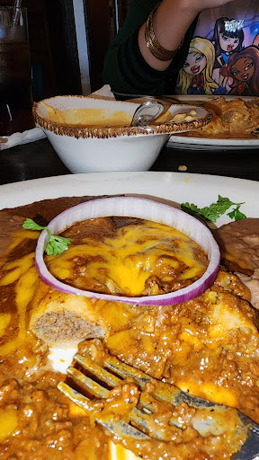 The wait staff was very quick and attentive to our food and drinks. They were knowledgeable of the menu and shared their recommendations. My standard of Mexican restaurants is the sour cream chicken enchiladas, so I got two of those and a beef enchilada. The food came out incredibly fast, which was great for having to be back at work at a reasonable time. Unfortunately for me, the sour cream sauce was a bit flavorless. I had to add pepper, which I almost never do. The rice and beans were good, but the beef enchilada was excellent!