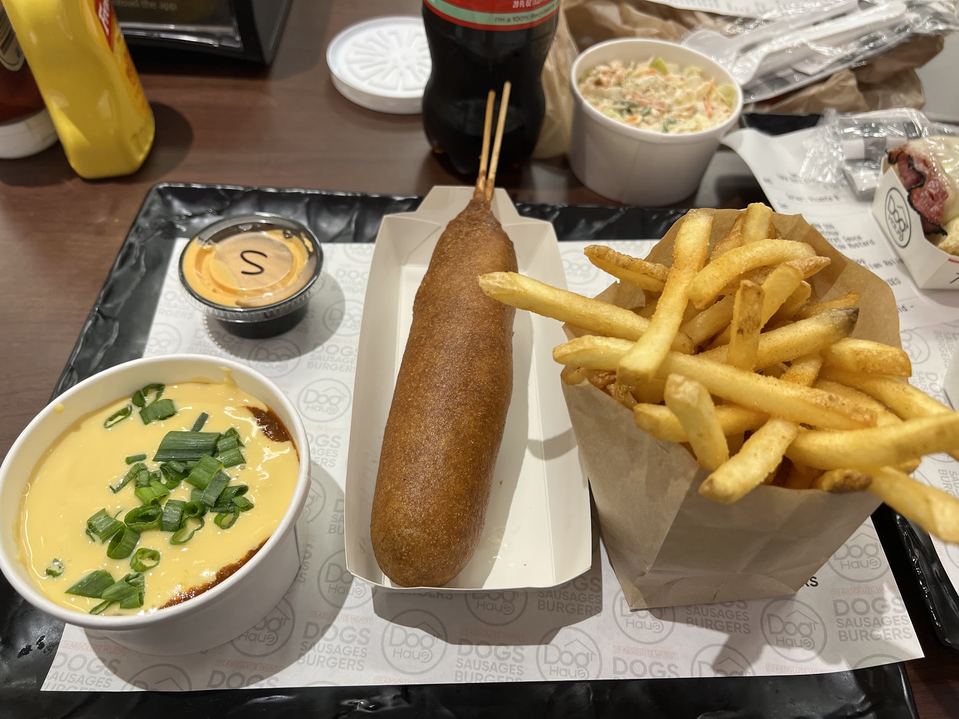 It's inside Kroger, which I wasn't prepared for, but you order on the little computer and pay and they let you know when it's ready. I got the Sooo Cali and it just didn't have much flavor. The website says they use a spicy aioli, but I didn't taste it. I think the avocado could use a little salt/pepper or something to help with the flavors because it was really just several textures without flavor. You have the crispy onions that didn't taste like much, the soft/cold avocado, and the meat. I don't generally eat much and I was expecting to be full, but I was actually still slightly hungry after that $8 hot dog. The thickness of the bread helped but it really should come with some chips or fries or something. Maybe next time I'll get a burger and go to a location that is not inside a grocery store, but considering hotdogs are their specialty, that's why I ordered a hot dog. It was relatively late and Kroger had $3.99 whole rotisserie chickens. I could have gotten 2 of them, been full and had 1.5 chickens left over, for the price I paid for...