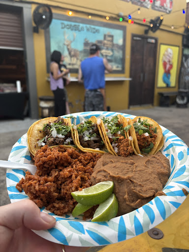 There’s something beautifully, defiantly wrong about a dive bar called Double Wide serving vegan Mexican food. It’s the kind of cognitive dissonance that makes perfect sense only in Texas, where contradictions don’t just coexist but slow dance together under neon beer signs.