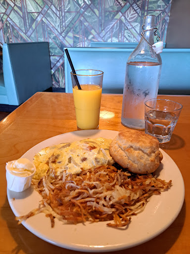 Read moreI ordered the huevos rancheros and a single pancake on the side. The eggs and the green sauce, tortillas, and fixings on the side were good, but both the black beans and rice were both flavorless. The popovers look great, and have a flaky, crusty outside with a soft, airy inside. Sadly they too, are almost flavorless. They taste like the basis for a variety of different flavored popovers. I think they're really missing out on this item's potential. How about a cinnamon/sugar one? Maybe a spicy one with some paprika and jalapeno? Bacon and cheddar? Overall the menu seems dated and very basic. And that's saying something because I'm pretty basic when it comes to breakfast. I usually look for an egg/meat plate with a pancake or two; not to be found here. If memory serves the menu featured four semi-traditional breakfast plates, then four or five of the fashionable benedicts (pass), then a couple more with biscuits and such I think? The pancake itself has some kind of cheese in it, but it wasn't that great. I've made better Bisquick pancakes on Christmas morning. The location is great, parking is good if a little cramped, but so is everything else in the area. Atmosphere is good, especially the tables by the window. They remind me of the view in an old Kip's Big Boy or Denny's. There's always young families present and some dogs on the patio...