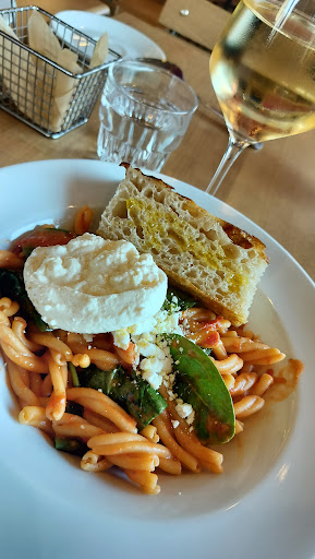 Read moreMy partner wanted to visit this new restaurant in the neighborhood, and I agreed since I was in an adventurous mood. Unfortunately, our experience was not great. I gave it an overall rating of three, but it would have been a four had the bread been included with the meal and there been actual salt and fresh pepper not little packets available. The value proposition is just inappropriate for the format. Our meal for two including the lasagna, the carbonara, one slice of bread, two side salads, and the smaller size wine was approximately $50. This at a walk-up counter restaurant, where they did not automatically deliver your food and they expect you to self-buss tables. The food was overall good, but not great. My lasagna had been cooked too long and the lasagna noodles were mushy and although I like the brown edges of lasagna, on the piece I got it was dried and hard to cut through. The flavor was good though, and it was interesting that it had both regular and spinach noodles although it wasn't described that way. The carbonara was good as well with excellent actual pasta, although my partner felt it was very salty. The side salads were the highlight of our order with Bibb and other lettuce that was fresh, with olives and a balsamic vinaigrette. The bread that incurred over a dollar charge was pathetic. It was two very, very small thin slices of sourdough bread that had it been fresh and more generous would have been pretty good, but that had been cut for too long and dried out a bit, drizzled with a very small amount of olive oil. The service was helpful and friendly, but our entrees did not arrive even with our salads; our salads arrived after the entrees, and were apparently made only after one of us reminded the line folks that we had ordered salads. In addition our wine order was forgotten, which was promptly remedied upon being brought to the attention of the person minding the bar who was very apologetic, but.... The atmosphere of the physical space was very fast food like, with music played very loud, not cozy or homey like one would expect of an Italian restaurant. All in all, a disappointing experience. I wouldn't refuse to go back, but wouldn't be the one to suggest...