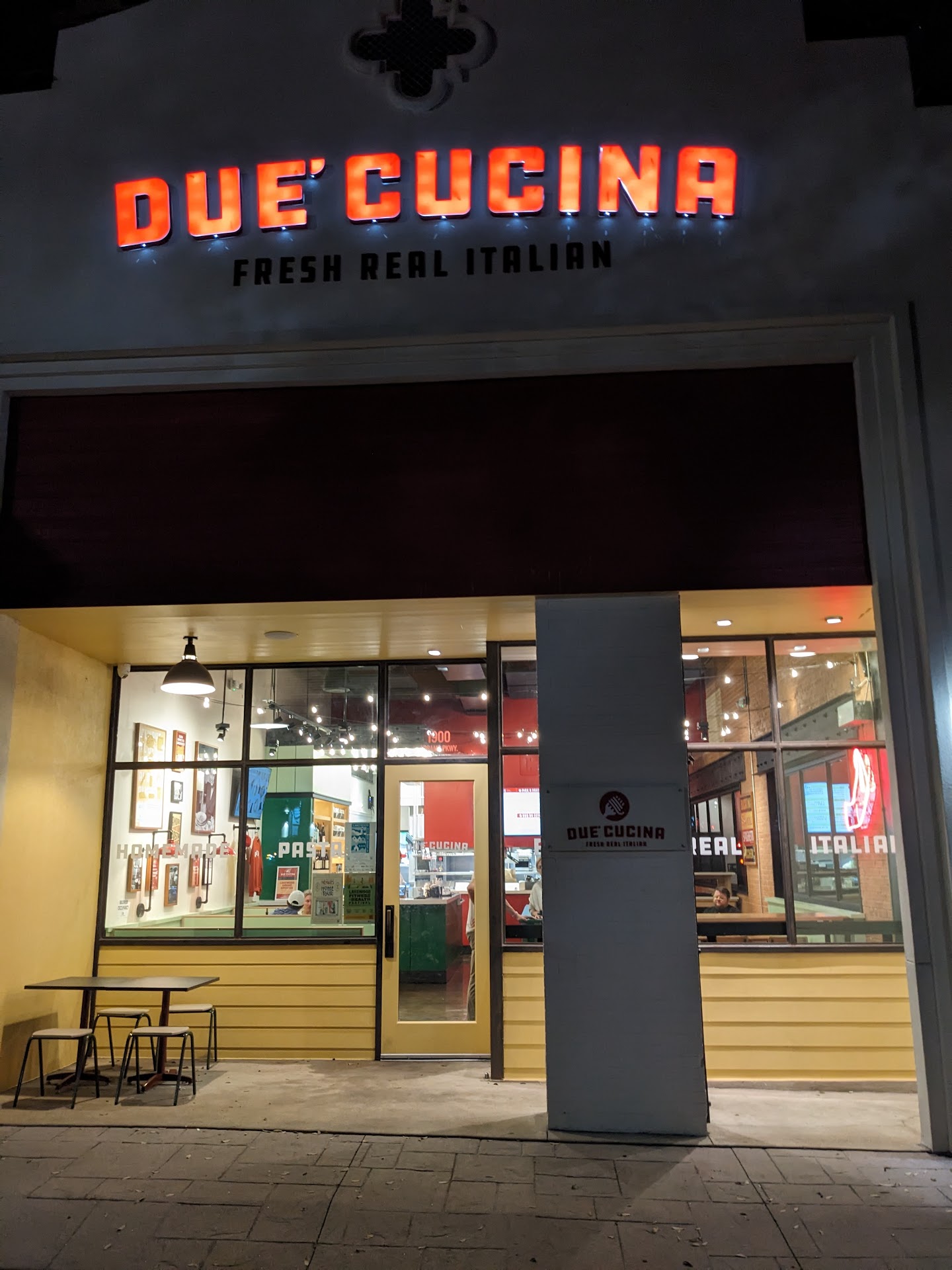 Due' Cucina doesn't cut corners. When they first opened, I had already read about the owners' story and the restaurant concept. I was hooked. Only 3 minutes away from my house, I dined myself and told everyone I knew about this restaurant. Here's why: it's clean (almost all EVOO), it's fresh (the best quality ingredients they can find), and it's undeniably authentic Italian - for a good price!