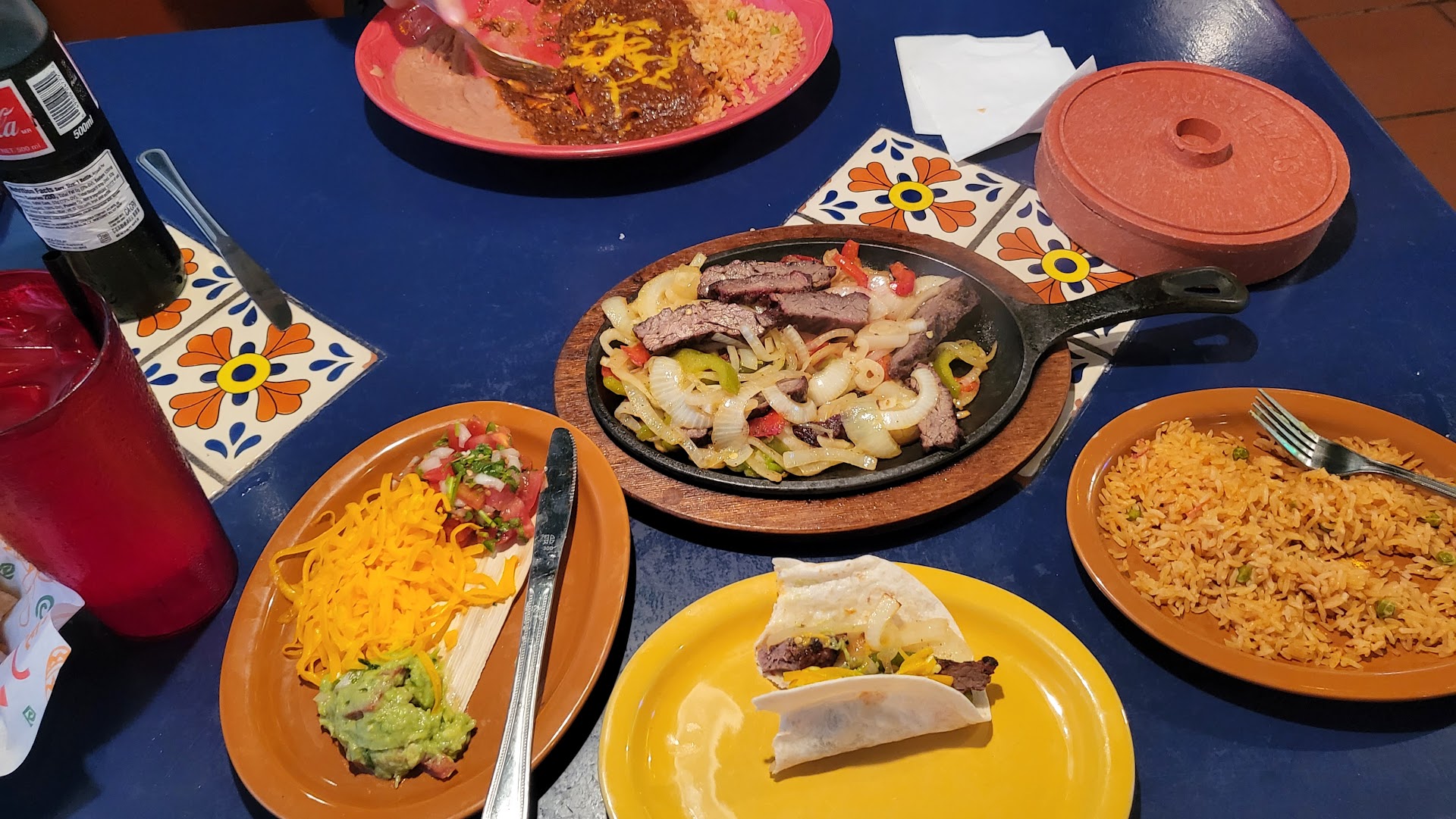 I don’t leave a lot of reviews but this feels like we’re we’re getting pranked. We were sat at a perfectly reasonable table, but after about a minute they asked us to move. I’ve never been asked to move after being seated but no big deal. Unfortunately the new location of our table had an unpleasant smell. Sort of like feces or someone farting. I’ve worked in restaurants and know that sewer/plumbing issues happen. Not great, but I’m still not upset. Next we ordered a large queso and our drinks. There were 6 people in our party and they gave us two tiny bowls of chips. Again, still not a big deal. We asked for another basket and they bought us some. One of us ordered sweet tea and kept getting unsweet. She asked for them to replace it the first time, but after having unsweet tea poured in the cup multiple times she gave up. Then comes a shrill, earth shattering drilling sound rattling the walls and the floor, almost like someone above us was using a jack hammer. I couldn’t hear anyone at my table talk and we had to shout at each other as this noise continued for about twenty more minutes. This horrible metal grinding noise penetrated my skull for the remainder of our lunch and I still don’t know if someone was snaking a drain, or if it was a meat grinder, or what that noise was but it sounded like highway construction inside the building. They charged my brother $18 for “fajita enchiladas” that had ground beef in them and no fajita meat in sight, even after returning to the table after we ordered to re-clarify whether he wanted chicken or beef. My food wasn’t right either, but not to such an egregious extent. They completely forgot to ring up my other brothers food so he had to sit and watch us eat. He finally got his food when everyone else was leaving so he ended up just packaging it up to-go. We didn’t argue about the wrong check because we wanted to get away from the smell of poop and the bone rattling noises as quickly as possible. I definitely will never set foot near this place again. Keep in mind, we were one of only three tables at the restaurant, so it’s not like the staffs attention was spread very thin. The whole time it just felt like I was on a prank show or that they were trying to...