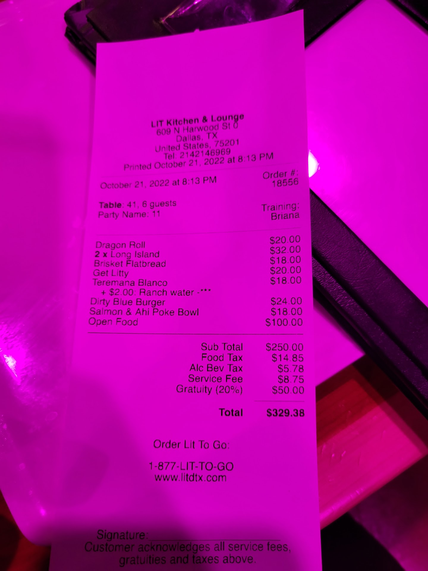 For the past two months, my friend and I had been planning to celebrate our birthdays at Lit Kitchen with family and friends. However, the excitement I had about my birthday last night was completely ruined. I've never been so disappointed on my actual birthday. I was so embarrassed and hurt that my night turned out the way it did. I had made a reservation about a week or so in advance for 9:00 p.m. and was not informed that a private event had been booked for the night. When we got there and checked in, I was told that we would have to eat and pay the bill by 10:15 p.m. Had this information been communicated properly, I would have chosen a different establishment to avoid any problems. But it wasn't. After being sat down, it took a while for us to get our drink order. Once we received our drinks and our server came to take our food orders, she was pulled away. When she came back, she told us that we couldn't order because the kitchen was backed up and did a manual hard stop. She was very pleasant and apologetic and she tried to do what she could. She provided an order of fries and sushi rolls for a table of 8. When talking with the director of operations, he was not understanding and very short. He definitely needs some more training in dealing with paying customers. Very unprofessional. Told me, he couldn't comp our drinks due to being sat down 1 min after the 15 min grace period. When the last two people were being held up by their valet service. Bri, our server, again was amazing and apologetic and wanted to make up my bday dinner. I may take her up on her offer but I'm very hesitant. She's needs a higher position in the company because she embodies all that management should. After being so disappointed, I would not recommend this place. Save your money because you can and will be overcharged because that's what happened with our 2nd...