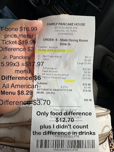 Read moreIf I could rate this place a Zero I would. This was the most horrendous disgusting the walls to the silverware were filled with dirt. The water cup had something stuck in it and that’s just the start. Milkshake was more like chocolate milk and we let that go. Only one associate waiting on tables (no one was really there so I see why)and we will get to the part of the waiter later. We get half of our order and each one had fries however it looked like the quantity of fries was for one person. The cheese burger meal had 9 fries on the plate. Then the grilled cheese didn’t even have melted cheese and had burnt bread. Went to give my grievance about the meal and I was met with arguments and a disgruntled cook that was mad I had items that needed to be adjusted. The waiter then stated he can’t listen to what I’m stating because he can’t come between me and the cook. I cancelled the rest of my order ready to pay and the waiter then went on to state I pretty much wasted their time and that he was told to watch out for my table!! Whhhaatt I was done from there asked for his name which he lied about stating it was Eric but the receipt stated eman then for the horrible quality I received I still paid 67 dollars. I will never eat here again and glad I don’t live in an area that doesn’t value quality. If this is what local Texas is giving for breakfast they can keep it. Oh and the bathrooms are disgusting I should have known to not sit another minute in this establishment when I see...
