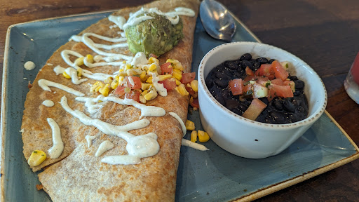 The food was somewhat unimpressive, today. Daughter had the carnitas breakfast quesadilla, and I had the chorizo omelette. These were rather flavourless. We do appreciate lower levels of spices to permit one to tailor the food, but these bordered on bland. The coffee, iced coffee and Watermelon Wakeup were great as usual.
