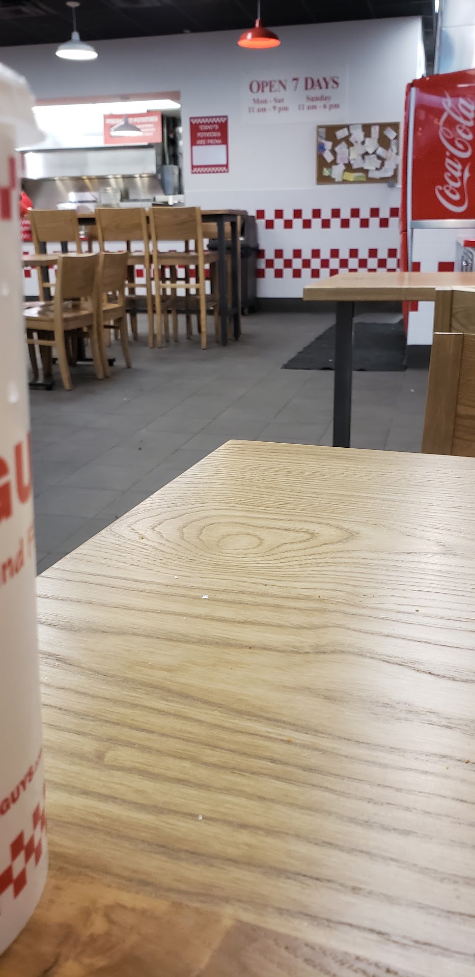 Read moreI would give 0 stars if I could. After ordering from a food delivery service at 11:30 I was told my order, a milkshake and fries, would be delivered around 12:30-12:45. Fine I want to have lunch around then too. Then my delivery time changed to 1:15-1:30 okay some holdup at the restaurant and they’re busy I guess. Soon enough my delivery was now being delivered 2:15-2:30. After I called customer service they confirmed that my driver had been waiting at the restaurant from 1. Apparently a shake and fries takes 2 hours to make! I’ll be shocked if this place can serve more than 5 people a day with this kind of efficiency. If they don’t want my money then just cancel my order and don’t leave me waiting for nonexistent food. I’ll never go to Five Guys ever again for their horrible customer service. If you want to get food don’t bother...