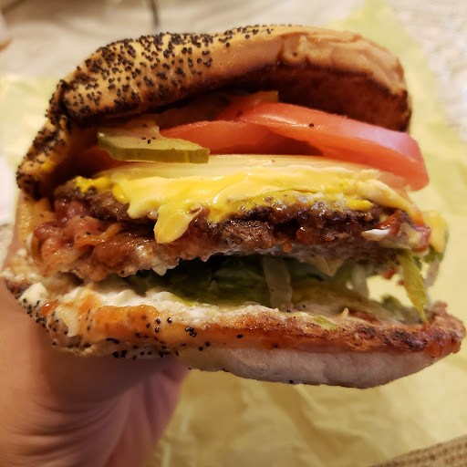 It was my first time there and i wasnt disappointed. Now i will admit i haven't been to many burger joints but i will have to say this is a very delicious, very juicy and very flavorful burger. What you see here is a double meat, double cheeseburger bun toasted with grilled onions (which i requested), lettuce, and tomatoes. I ordered the combo which came with a small drink and fries as you can see from my pic they are homemade and crispy. Now this isn't your usual sit down type of place you stand in line and place your order and take a seat. The girl taking your order is quick and your food is hot when they bring it to your table. Even though i enjoyed the food Im giving it 4 stars because the poppy seeds on the bun is over whelming and though i had mentioned to the girl taking my order it was my first time there She failed to acknowledge and help me understand that i had options. For example you can order a bun with no poppy seeds, which i will get next time and she also confirmed (after my friend mentioned it to me) that i could order tater tots and onion rings with my order. She also mentioned that i could add extras onto my tater tots, fries or onion rings however i would like them for an additional charge of course. I will end with this; the food is delicious and the price is very reasonable and now that i know i have options to customize my burger and sides i will definitely be going back...