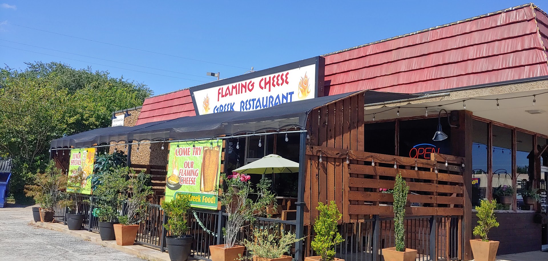 I have been a fan of Greek food for quite a while. My only real exposure has been to The Little Greek, which I like just fine, and I visit frequently. Some work friends took me to The Flaming Cheese restaurant, and let me tell you...Whoa! This place ROCKS! Everything was great! We ordered flaming cheese as an appetizer...cheese that is lit on fire in the middle of the restaurant and served with fresh pita (I think it was pita...it was some sort of bread none the less). We also had a humus appetizer that was delicious. Several folks ordered gyros that, by all accounts, were thoroughly enjoyed. Me and my partner ordered the gyro meat salad. OMG! The meat was super tender and deliciously seasoned. I am not a big eater and half way through I said to myself that I should stop and get a "to go" box. But! The food was so good that I decided that I would rather be uncomfortably full for a few hours than have to reheat the food later. I mentioned The Little Greek earlier (which I really enjoy) only to make the comparison that getting food at the Flaming Cheese is like going to get BBQ at Pecan Lodge rather than Dickies. Menu is varied, prices are reasonable, and service is great....