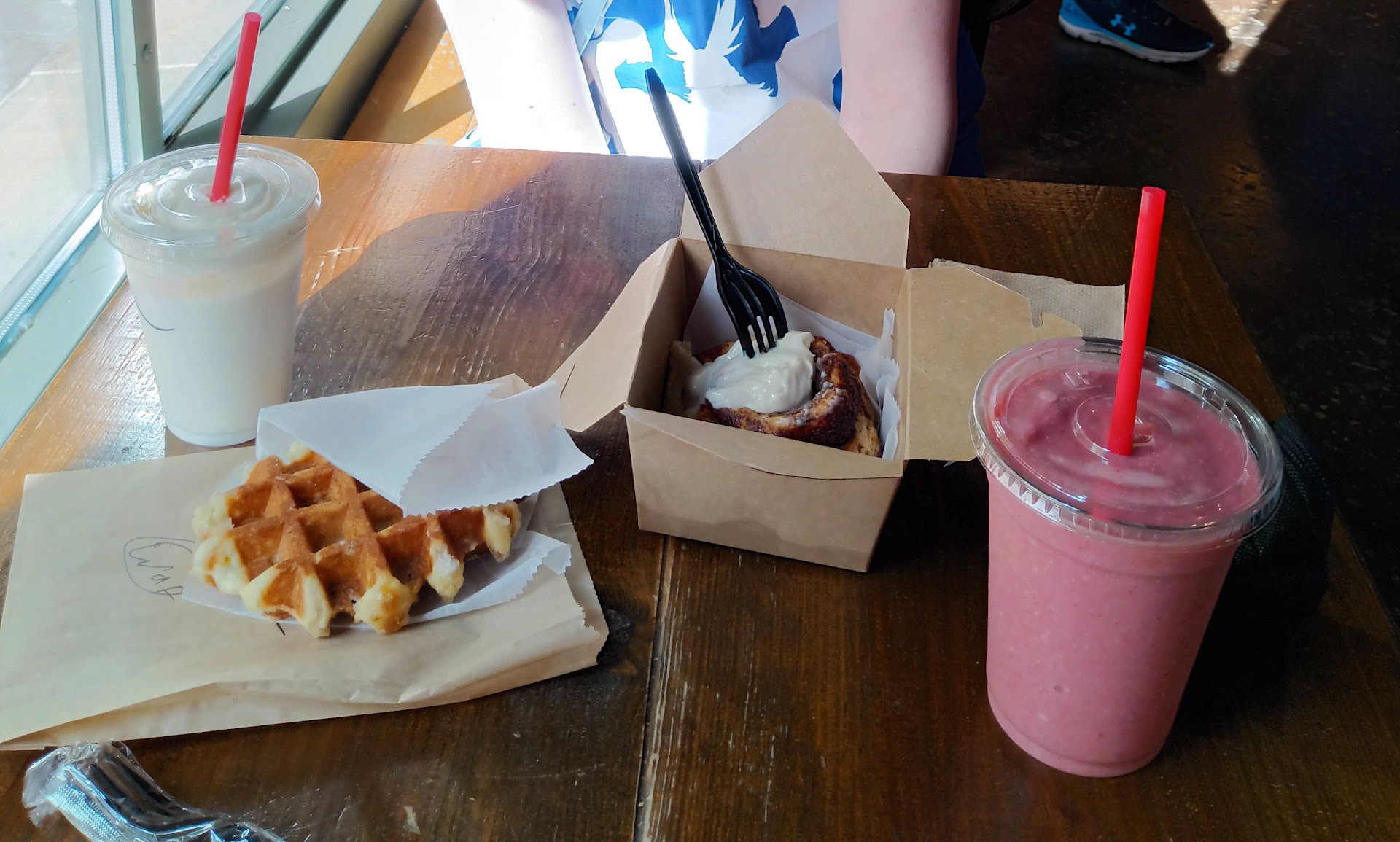Ā Ā Ā Read moreI was staying at Magnolia and had no idea that this place was attached until I got there! I'm surprised at how reasonably priced everything is. I don't go to cafes often but I think it's comparable in price or cheaper than Starbucks. One morning we got a cinnamon roll and a Belgian waffle. I got a strawberry coconut smoothie and my spouse got a vanilla bean frappe (which they loved so much they got a bigger one the next morning). The next day we got a chocolate croissant and a Nutella turnover. I think each of the pastries was about $2.50? So not bad pricing. The second morning I got a hot caramel apple cider, which was delicious but all the caramel went to the bottom of the cup š Anyway this place is dog friendly and they even have a jar of treats at the front š„ŗ The workers are all super nice and friendly, even the ones we ran into on the Magnolia...