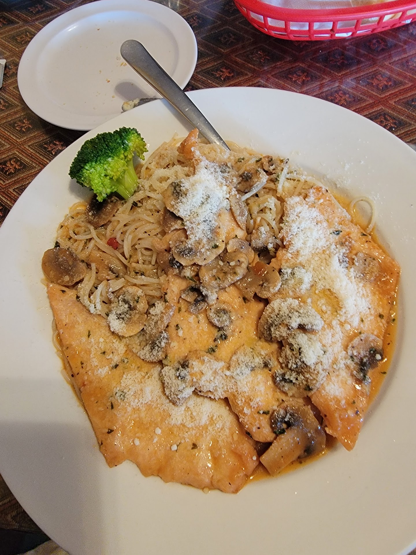 The actual fettuccine was lackluster as well. The pasta was overcooked, and the sauce had zero flavor. Even a bit of salt, pepper and sprinkled on parmesan couldn't help it. The chicken itself tasted like chuck chicken out of a can. It actually reminded me of really bad hospital food. Like the bad 'heart healthy' menu with no flavor of any kind. I could only eat a few bites, then I just couldn't.