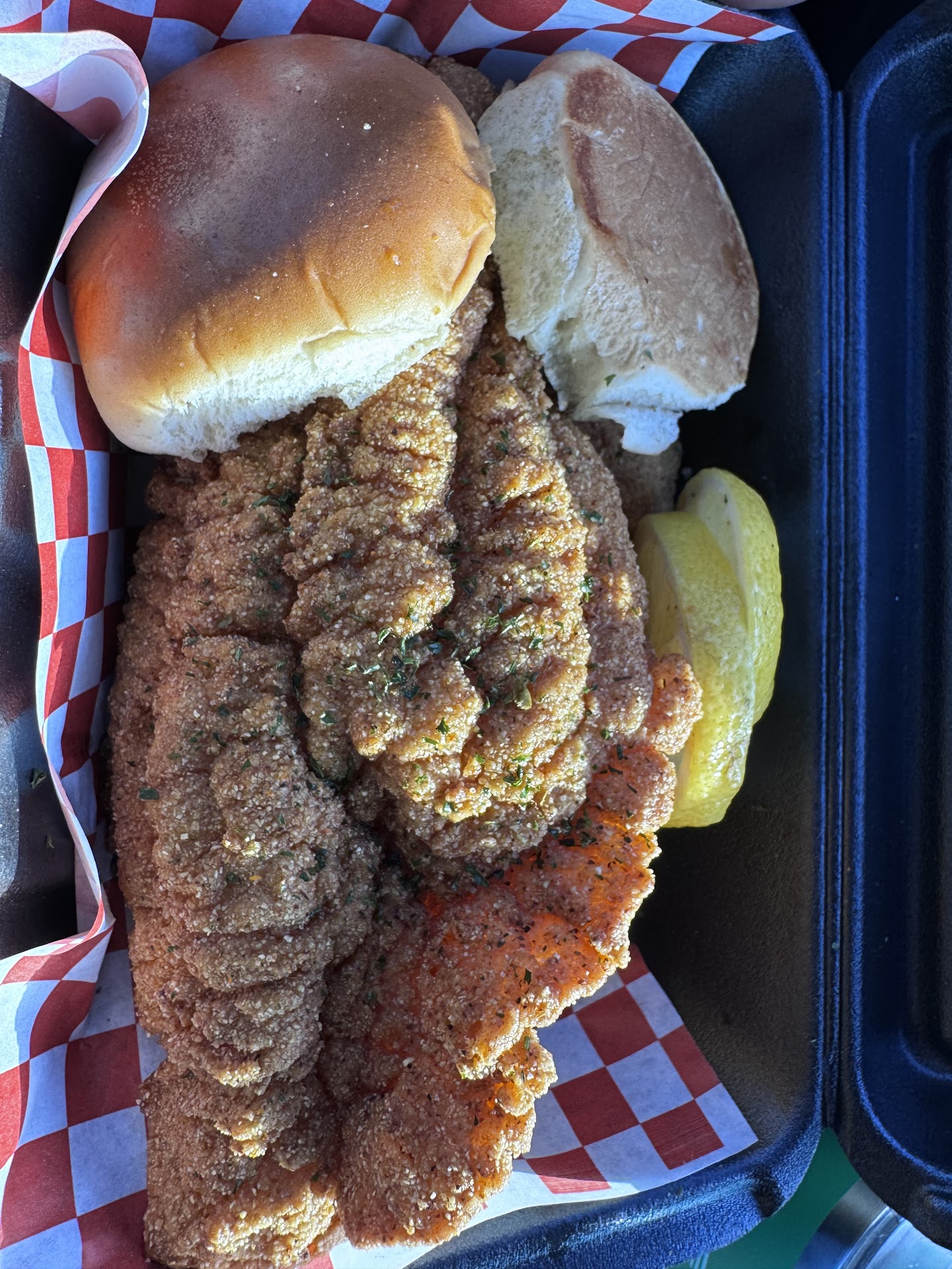 The catfish fillets were very well seasoned and fried crispy and Crunchy... I don't know what seasonings they used on it but it was very zesty and produced a good flavor.