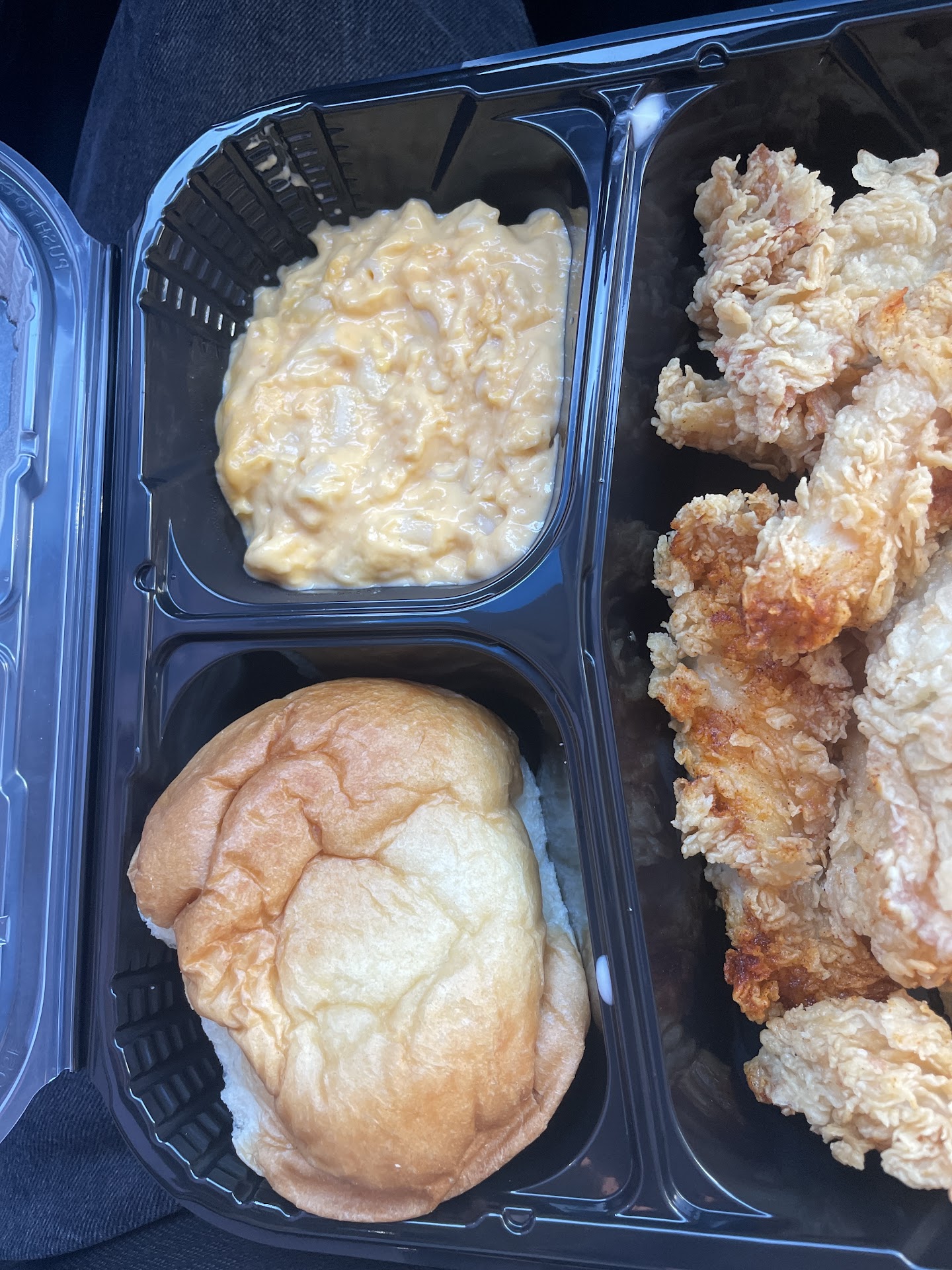 What pissed me off and the reason I will NEVER return is, they didn't have any golden fried chicken. Like what the hell? She said they have one fried breast. The food wasn't for me, it was for my sister's kids. If my niece wanted a breast, my sister would have ordered a breast for her. I asked if they had tenders and she said yes. After taking some time to think about it, I went ahead and told her to give me the tenders in place of the drumsticks.