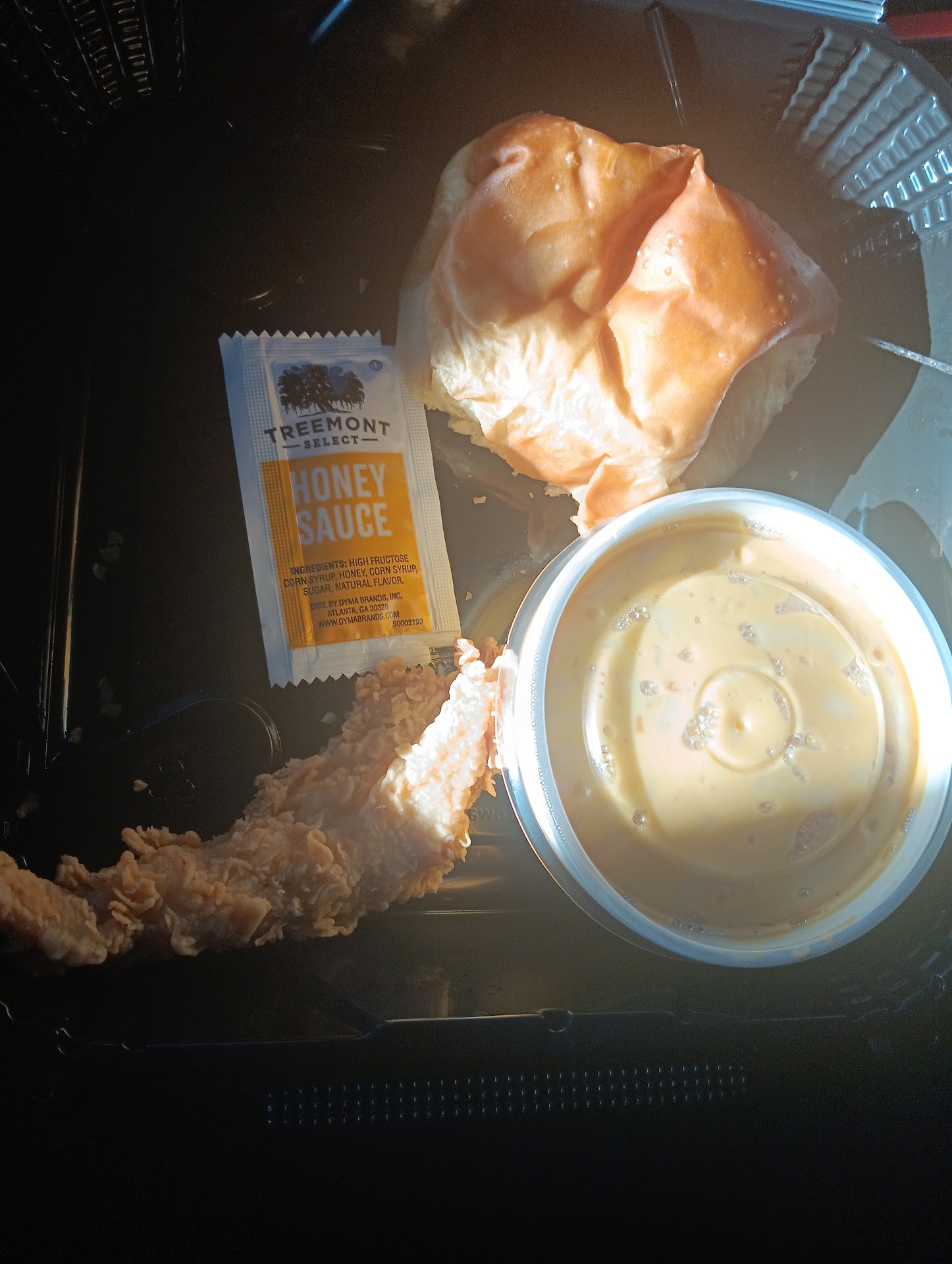 A kids meal comes with a drink, so why did I have to ask her for it? Upon arriving home, my sister noticed the EXTRA GRAVY THAT WAS REQUESTED AMD PAID FOR, was not in the bag. The tenders had a gravy in them which wasn't enough for two kids! At 59 cents it wasn't worth a trip back up there.