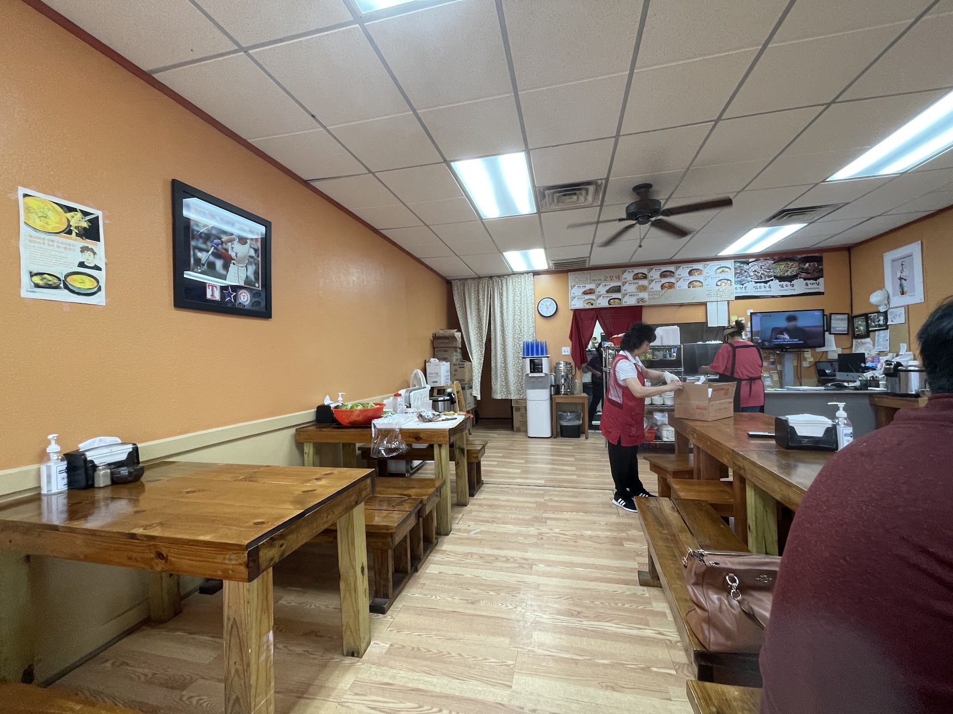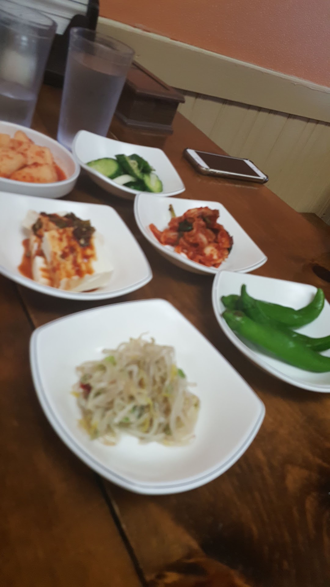 This establishment is an embarrassment to South Korean food and moreover their hospitality. Enter the restaurant and welcome to another hole in the wall, but that is fine as i've been to plenty that have turned out to be hidden gems. This was not! We were not greeted. Old grandma just points at some table for us to sit, not asking us if we are happy with the seating. There is obnoxiously loud music playing from a small TV near the register. It's a K-Pop boy band doing their opera rendition of Coldplay (on a loop). Then, after waiting 5 minutes, grandma comes by with 1 menu for 2 people to share. She didn't seem to care about asking us what beverage we would like to drink. She expected us to instantly know what we wanted to eat just by looking at this menu that had only about 15 items on it. The food was overpriced for the quantity (the same quantity in Plano will be about $2 to $3 cheaper). It tasted bland. The below average side dishes only came out with our meal after a 15 minute wait. We felt like this was done intentionally. The food was bland so I had to use some of the kimchi sauces from our side dishes to add some extra flavor. No side dish refill, not even for water. In fact, grandma did even bother to check in on us and ask if we were enjoying our food. Instead, she was avoiding making eye contact as far as possible. We felt very unwelcome, almost as if they were obligated to serve us but didn't really care to. Sure it's a mom'n'pop joint, but those typically are awesome. This one simply wasn't. What a...