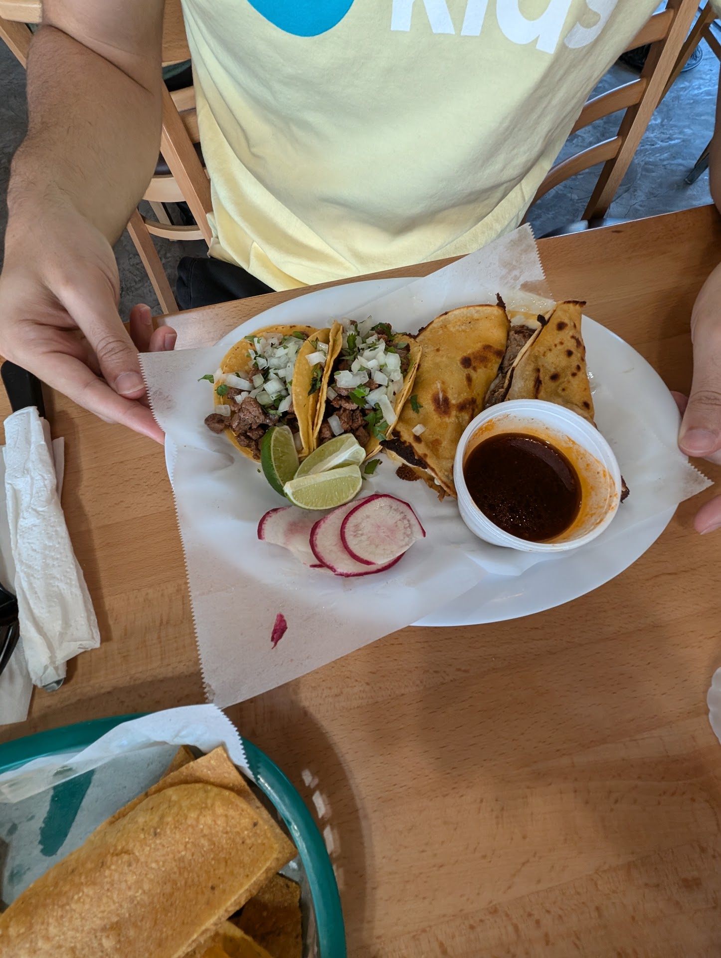 This was our first & last time eating here at this restaurant, we encountered a racist moment which made me & my family very uncomfortable. A Caucasian man was trying to purchase food & charge his tablet for him to get an uber, he asked permission & they still denied his service & kicked him out He asked them âare you denying my service because Iâm white?!â & they replied saying âyes!â Made me me so sad that racism is still around, really bad experience for our first time. Even though the food was okay, we wonât be coming back here. Overly...