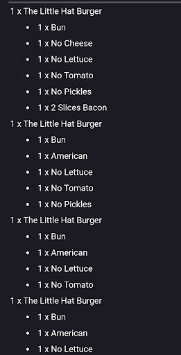 Read moreI’ve been to Hat Creek Burger Co. on Walnut Hill 3 different times since a friend told me about it around a month ago and every single trip has been wonderful. The first time I went in I got the Big Hat burger, then the Cobb salad, and today I came in for lunch around 11:30 and got the Bacon Royale, which was suggested by an employee named Alejandro.