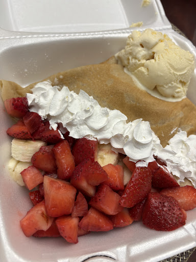 Got the crepe with ice cream (no drizzle on top, but Nutella & banana/strawberries stuffed inside). Very delicious! Not photographed was the jello cup and churro bags we got. Clean place, friendly service, and I can’t wait to go through the menu and try the...