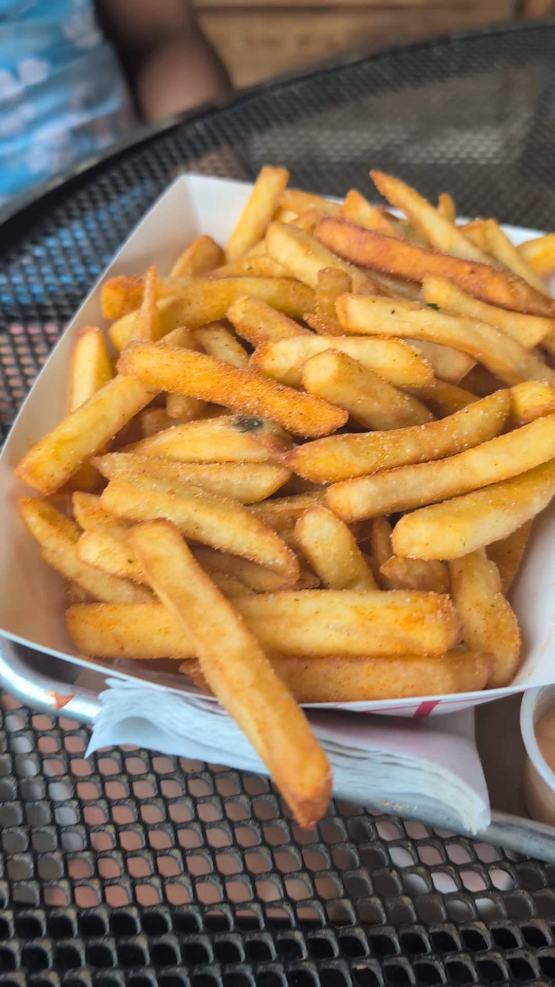 We saw the picture of the burger on the banner passing by high-fives from the parking lot. So we changed our plan, ordered 2 quesadillas with sides (from plomoâs and went back to High-fives and got..-) 2 burgers with fries so we could have two experiences in one! We ordered one Shmurger just the way it came and another with everything on the side. We also got the fries and 5 sauces. I didnât like any of the sauces besides ketchup, they werenât bad at all, they just werenât anything I wanted to keep eating or would order again. (I love the idea of dipping sauces, having really good ones would have been top notch though). (I didnât like the 3 sauces I tried from Plomoâs either btw.) Free refills for my little boys drinks and one alcohol drink that was really good!