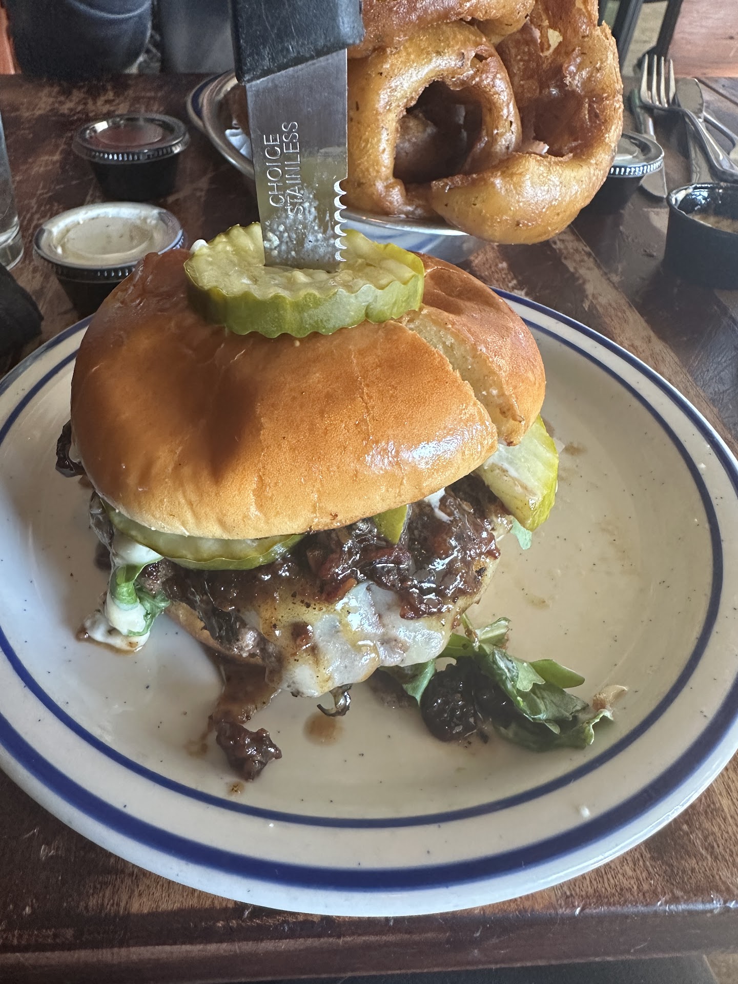 Unfortunately it was a miss for me with the fried bologna sandwich, but the patty melt they brought instead was so amazing! It came on Texas Toast and was stuffed with tons of peppers and onions. Oh so melty, gooey, and good!
