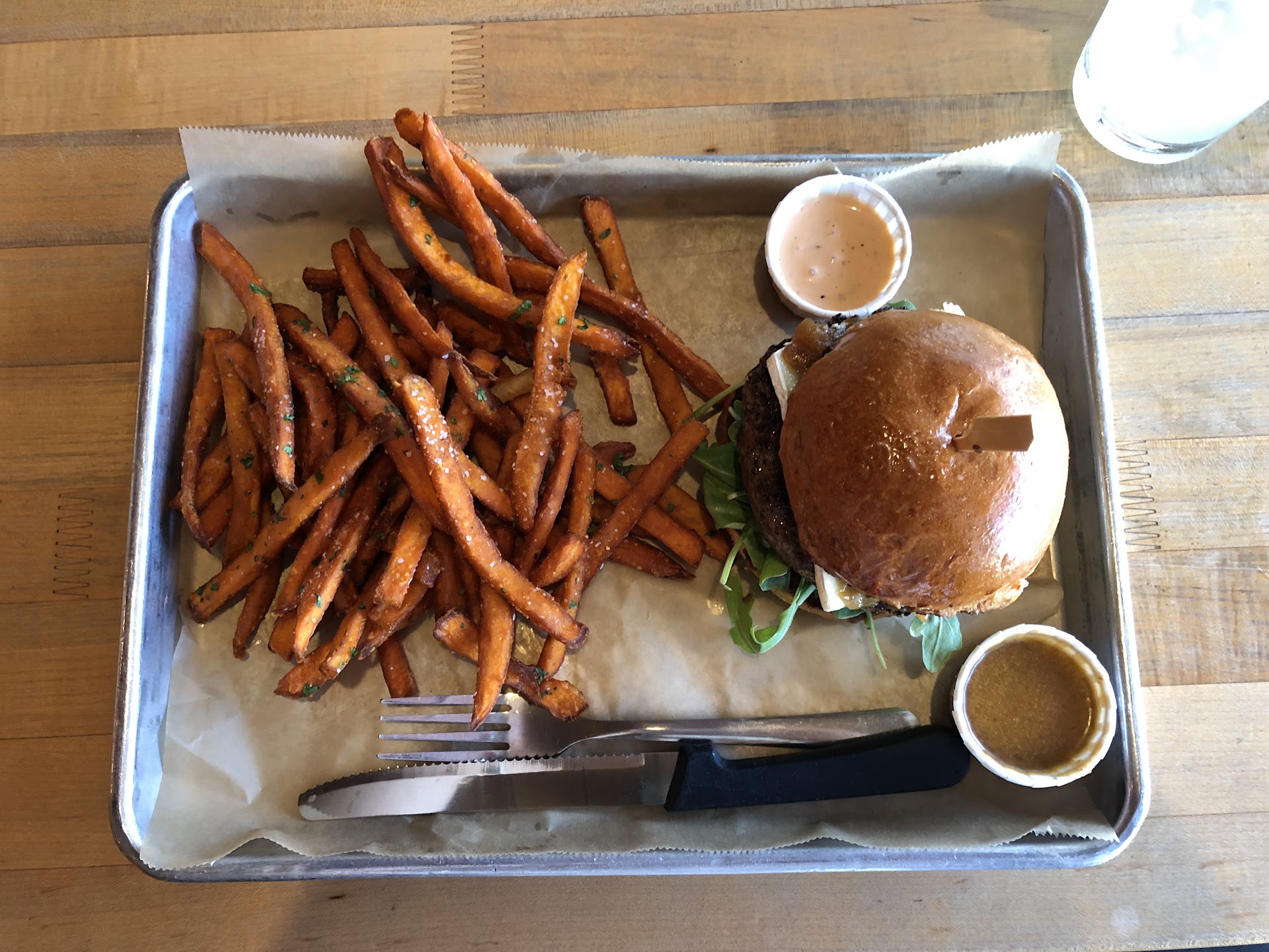 Read moreMy oh my what a dang good burger! I am kind of a difficult eater in some ways. I like grassfed meats and organic veggies and I steer clear of most inflammatory causing foods. With that being said.....the grassfed burger with a lettuce wraps is the bomb dot com! I have ate it twice this week alone. So good. The great thing about me not eating tons of condiments on my food (no dairy, added sugars, soy, gluten, etc...) is that I can actually taste the meat. It is so good, guys. The quality is spot on. Feeling a bit splurgey? Get the sweet potato fries or the truffle fries. I prefer the sweet potato fries since they are better for you (and perfectly crunchy soft...make sense?) but my husband loves the truffle fries. I took a few....they are really goooood! Now....if you eat bread and dairy like a normal human (obviously counts me out😀), then hold your horses because this place will knock your socks off! My husband had the Dubliner burger before it went bye bye for the season. It was basically a shepherd's pie on a bun. 🤤🤤🤤 Today he had the Red-eyed Stranger that had just a plethora of awesome on it. I also want to note that the Red-eyed stranger also comes with french fries and a drink that are specific for different musicians and actually have a playlist of music to go with the food. So...it was a Willie Nelson inspired burger (red headed stranger). Cool, huh? The shakes are great! My son had the breakfast burger and a malted milkshake. Oh...the breakfast burger!!!!!!! It looked so dang good!!! It was definitely a breakfast burger. Listen....just go check it out. I know you will enjoy it...even if you get a boring 'ol lettuce wrapped grassfed burger like myself....you will still be blown away and brought back to burger heaven by the...