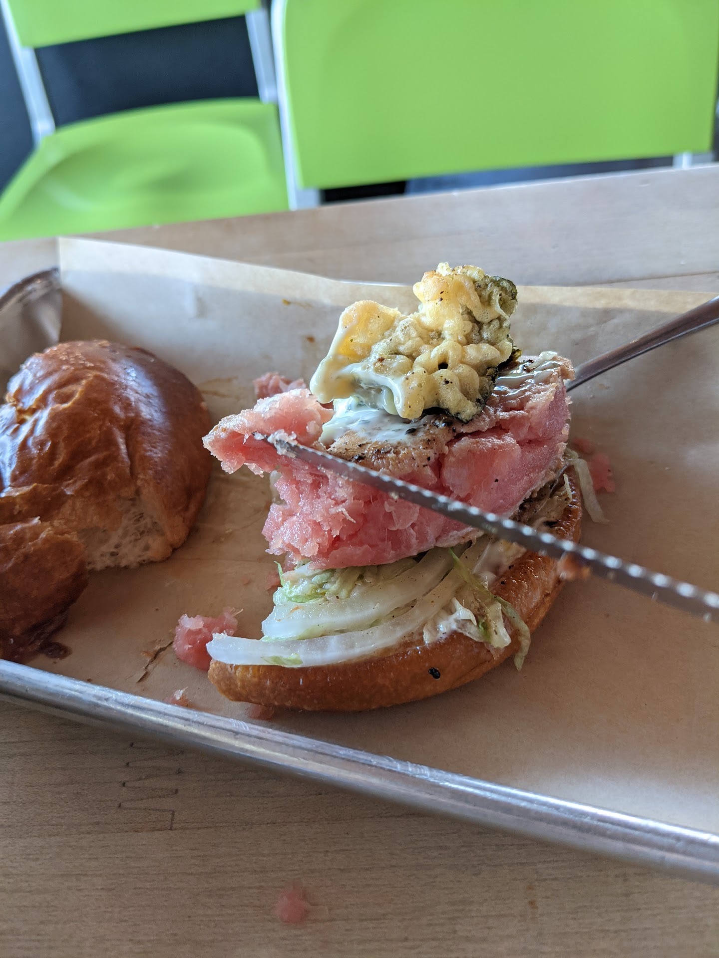 Read moreMy wife and I ate here for the first time because we have heard good things but the service and the size of the burgers were below average. The food was good but it was left at the counter way too long once I received my burger it had to have sat for 7 minutes before they took it to another table for waiting behind us to examine then it was put back under the heat lamp for another 5 minutes . My wife finally gets her burger but it came with onions and the sauce that came with it on the burger but we had originally ordered no onions and the sauce to be on the side, It normally isn't a big deal but we weren't sure how it tasted so she didn't want it on the burger. So we had to ask 3 times and have it sent back to have it on the side when they kept bringing back the same thing it was like they weren't paying attention. The fries were ok in the bowl it was a nice idea but very thin small fries so not really worth the 6$ spent on them alone. The burger I got was a tad under warm but I didn't make a big fuss out of it and it was good so that's a plus, but of course with my wife finally getting ready to eat her burger after having to keep sending it back several times it was cold. I spent about 30$ here and I normally am not the one to complain but I believe you get what you pay for but this was not the case. Overall I have rated this 2 stars because of the customer service that was not the best and burgers the size of krabby patties. I would not have been this harsh if it were very busy but there was literally 3 other tables there with us. I will no longer eat here I will be going to Chili's or The Garage where we will get more bang for our buck. * BTW this is the Oklahoma...