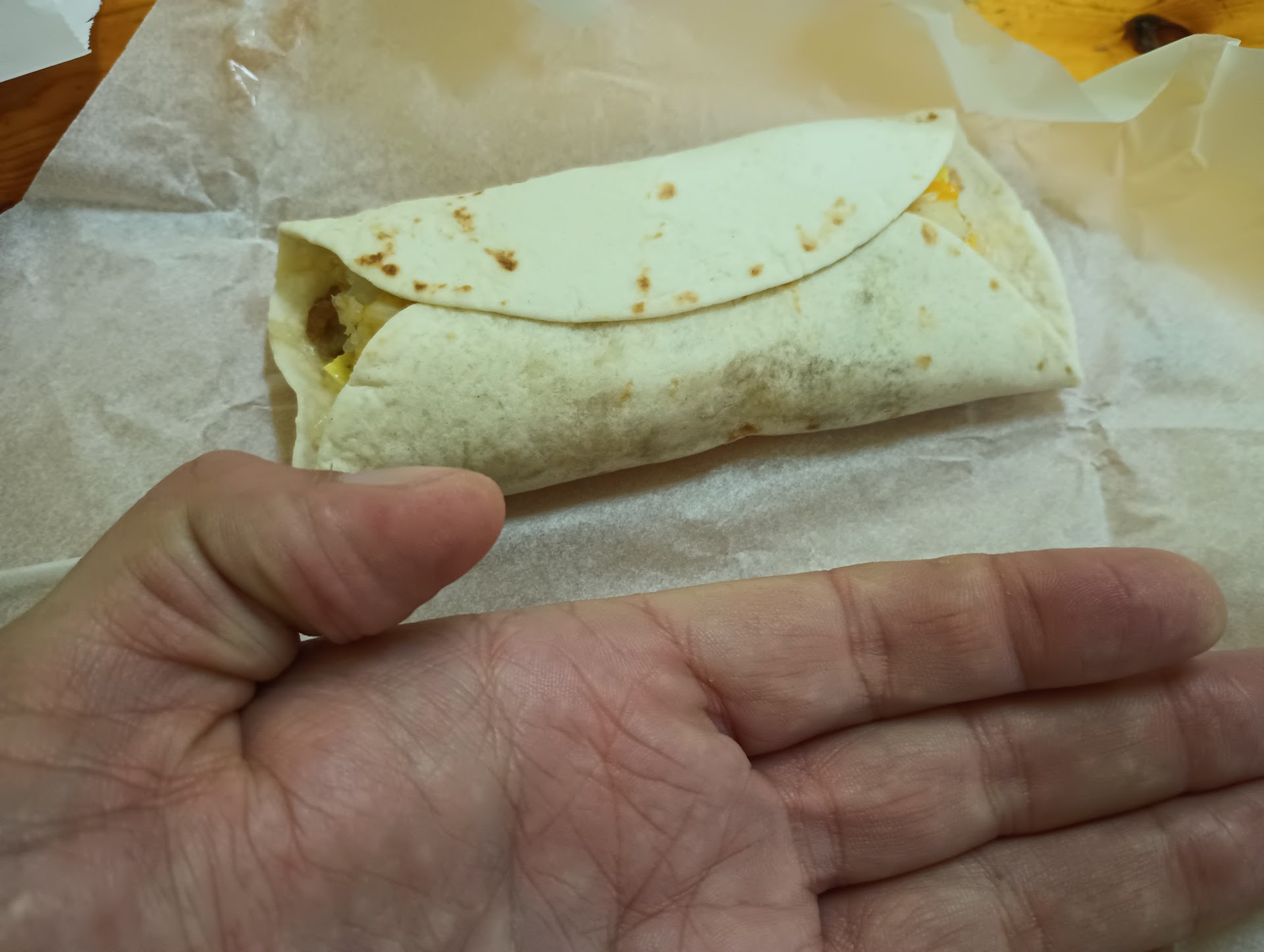 Read moreI bought the most abysmal $2.29 "breakfast burrito" I have ever seen here (pictured with hand for scale). Was supposed to be sausage, egg, potato, and cheese. The sausage was a thin sliver of smoked sausage or hot dog. Cheese was a slice of American "processed cheese food.". Came out of a refrigerator and microwaved just enough to make the ends warm.... My second bite was into ice-cold hash brown. Coffee was self serve drip that was weak, basically hot water with a suggestion of cheap coffee... Instant would have been better. Restroom was out of order, would not be surprised if this was a permanent state but I'll never go...