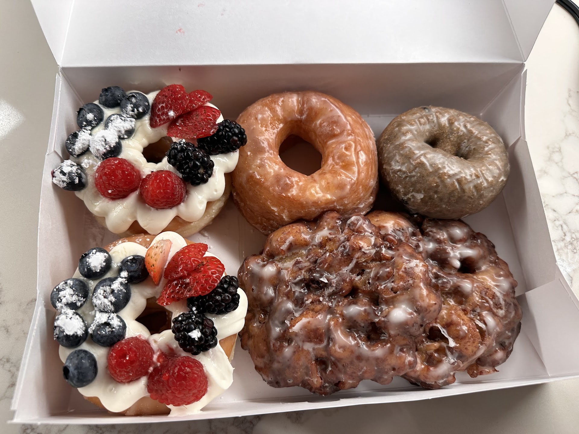 Read moreI was really going to try to give Jaram's some slack after speaking with them but I just can't after half of the donuts I received were inedible and disgusting. I searched google to find the best Apple Fritters and Jaram's Artisan Donuts came up. I went to their website and Grubhub was a delivery choice. I looked at menu and I was unable to find Apple fritters individually. Come to find out you have to do the buy 6 baker's mixed donut bundle which had Apple fritters as one of the choices. Of the bundled, I requested 3 apple fritters and two blueberry cake donuts and 1 old fashioned cake donut. I also ordered 6 kolaches and 1 dozen donut holes both were overpriced. I received my order missing my donut holes. I didn't receive any Apple fritters of 3 I ordered. I received one cinnamon roll, a twisted donut with a carmel glaze, 1 glazed donut, 1 chocolate glazed donut with nuts and 2 cake looking donuts (one looked it had a chocolate glaze but it wasn't 😠🤢 and with one w/a clear glaze). The last three donuts I described were thick dry and disgusting. The kolaches were dry and tasteless. I was very disgusted and disappointed. The kolaches were $10.73 and The baker's mix $9.91 and the donut holes $2.60 a dozen. When I talked Jaram's the women basically said they had Apple Fritters in store when I talked to her after my order was delivered. She said they had a limited supply. So, basically I didn't even get 1 of 3 Apple fritters I requested because I ordered thru Grubhub. So, she was keeping them for the in store customers. I spent $32.00 dollars on my order with taxes in addition to the delivery fee and I couldn't at least get one fricking Apple Fritter! The cherry on top of this f-upped sundae was three of six donuts were disgusting. The chocolate glazed cake looking donut tasted like nasty tasting licorice. These donuts are trash, trash, trash! I guess you have to stay in the hood for good tasting donuts! Please don't let 4.5 star rating...