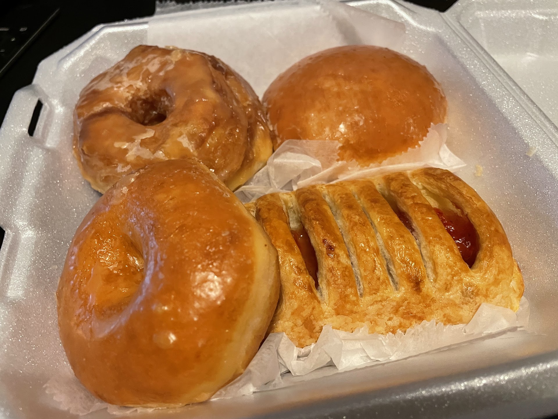 Overall, I was very disappointed with this place. Although it was later in the day. Iâve been to other places later in the day and still gotten donuts eaten their donuts several days after AND their donuts STILL hold up fine. Donuts should be able to withstand one day if at least the hours that they are being sold. Nothing was disgusting although I found everything was either average, a little weird, or slightly below average. I would not recommend this place & I will not...