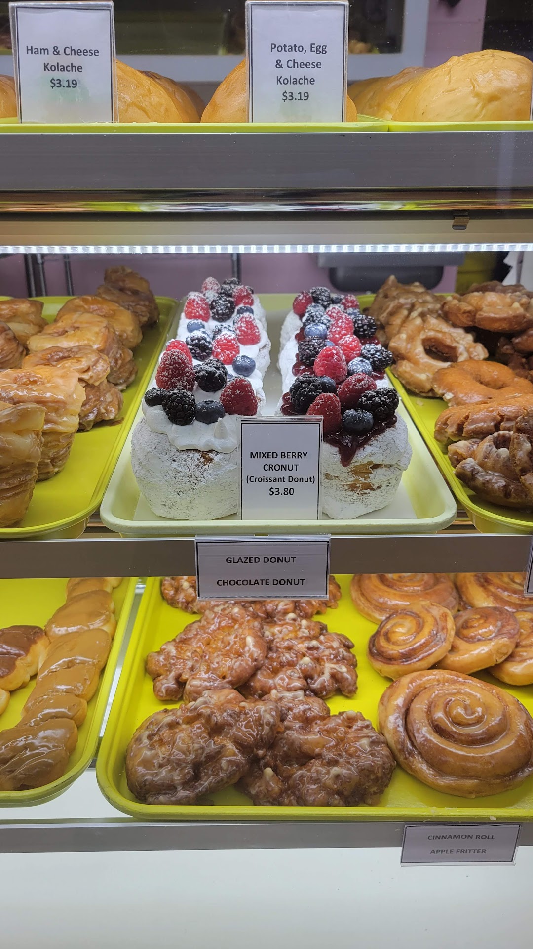 Read moreI have been coming to this place for about 3 months the service is somewhat suspect (not enough people working) but the kolaches are good donuts not so much! But today was my last purchase. This morning, I stop by to purchase a some kolaches and water and on my way out I realize that I forgot to buy the water so I turn around to pay for it! The first thing she says is that i have to buy over over 3 dollars with card. I dont know whoever told this business that forcing people to buy more than 3 dollars to use a debit/credit was a good business practice! I only carry card, the lady just said no, I said I just spent a lot money buying kolaches at your shop, she said âyeah sorryâ in my opinion, this are just bad business practices of âGREEDâ.