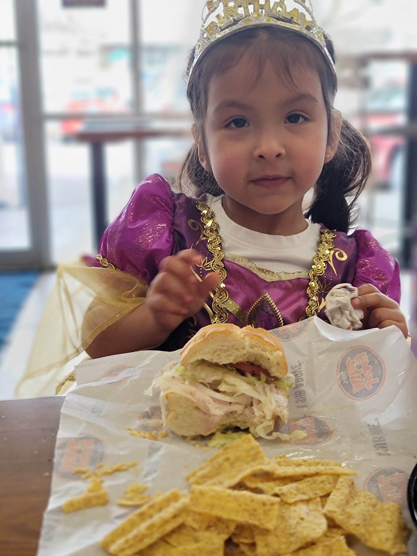 Love Jersey Mike's Subs! Our family has eaten at Jersey Mike's for several years. No matter the location, sandwiches are consistent with presentation and taste. You choose your sandwich from the menu options and as well as your choice of bread; White, Wheat and Rosemary Parmesan. After you order, the meat and cheese is sliced in front of you, which tastes fresher, and the bread is always fresh. My daughter orders a Kid's Turkey, I always get a #7; Turkey and Provolone on Rosemary Parmesan with Mike's Way. By the way, Mike's Way; lettuce, tomato, onion, spices, red wine vinegar and oil, trust me it's perfection! I want one right now, mmmmmm!!! Anyways my husband has his usual which is Jersey Philly Cheese Steak, no it's not a real Philly, which comes with onions, peppers and cheese on Rosemary Parmesan Bread. So, there you have it, great place to get a Sub! Oh, I also want to mention, the restaurant is always clean no matter...