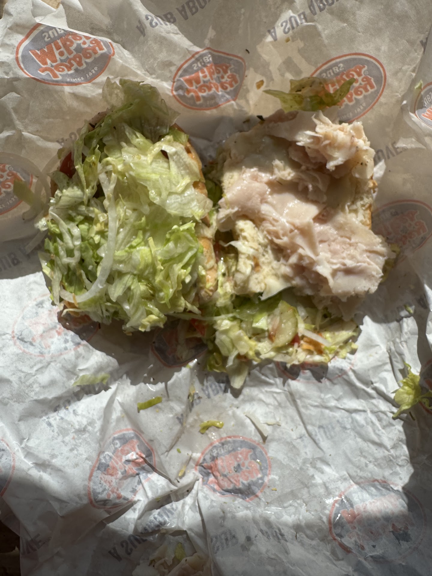 Read moreIs that all there is? I have been a fan of Jersey Mikes for years, but this store set a new low. The person that was slicing had no idea what he was doing, and butchered everything that he was trying to slice. Instead of slices, it was shreds, and as you can see in my photos, I would be surprised if I had 2 oz total of meat and cheese on my #7. When he had to use two different blocks of cheese - that were rectangles, not round like provolone should be, I politely asked if he was sure that was provolone. He scowled at me and said he knew what he was doing, and kept "slicing." The only bright spot was the woman that added the veggies and sauce - she was lovely, and have me exactly what I asked for, and more. When I got to the car I checked my sandwich, and yes, it was swiss not provolone. I just didn't have the energy to argue with them, and decided that the issue would get more attention and hopefully retraining by posting it here, than going back into a store where it was obvious that no one cared about...