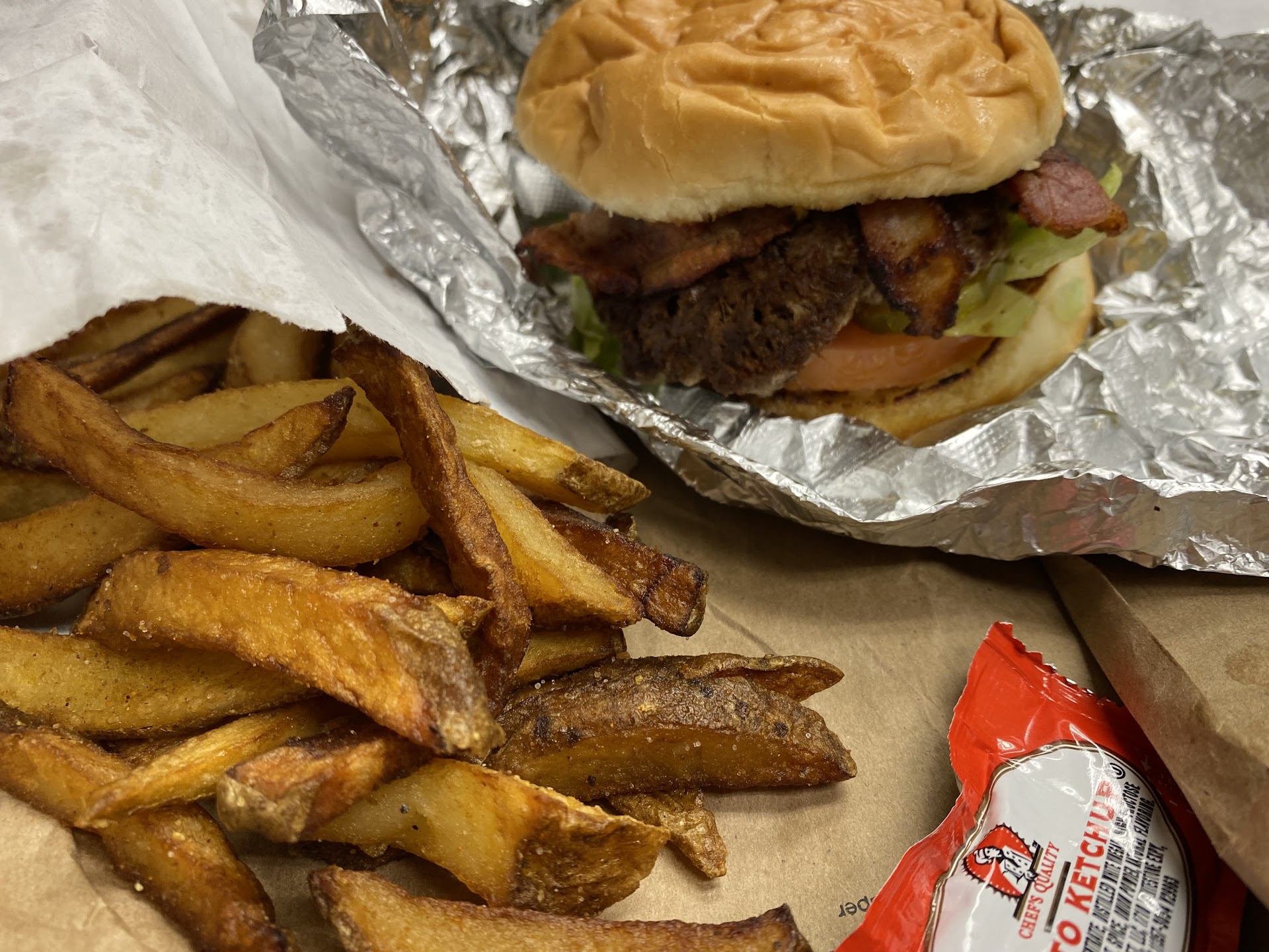 I got the classic burger platter and asked them to add bacon which. The meat had good flavor, the bacon was substantial and the lettuce, tomato and pickles were fresh. I assume the bacon accounted for the extra two dollars I paid.