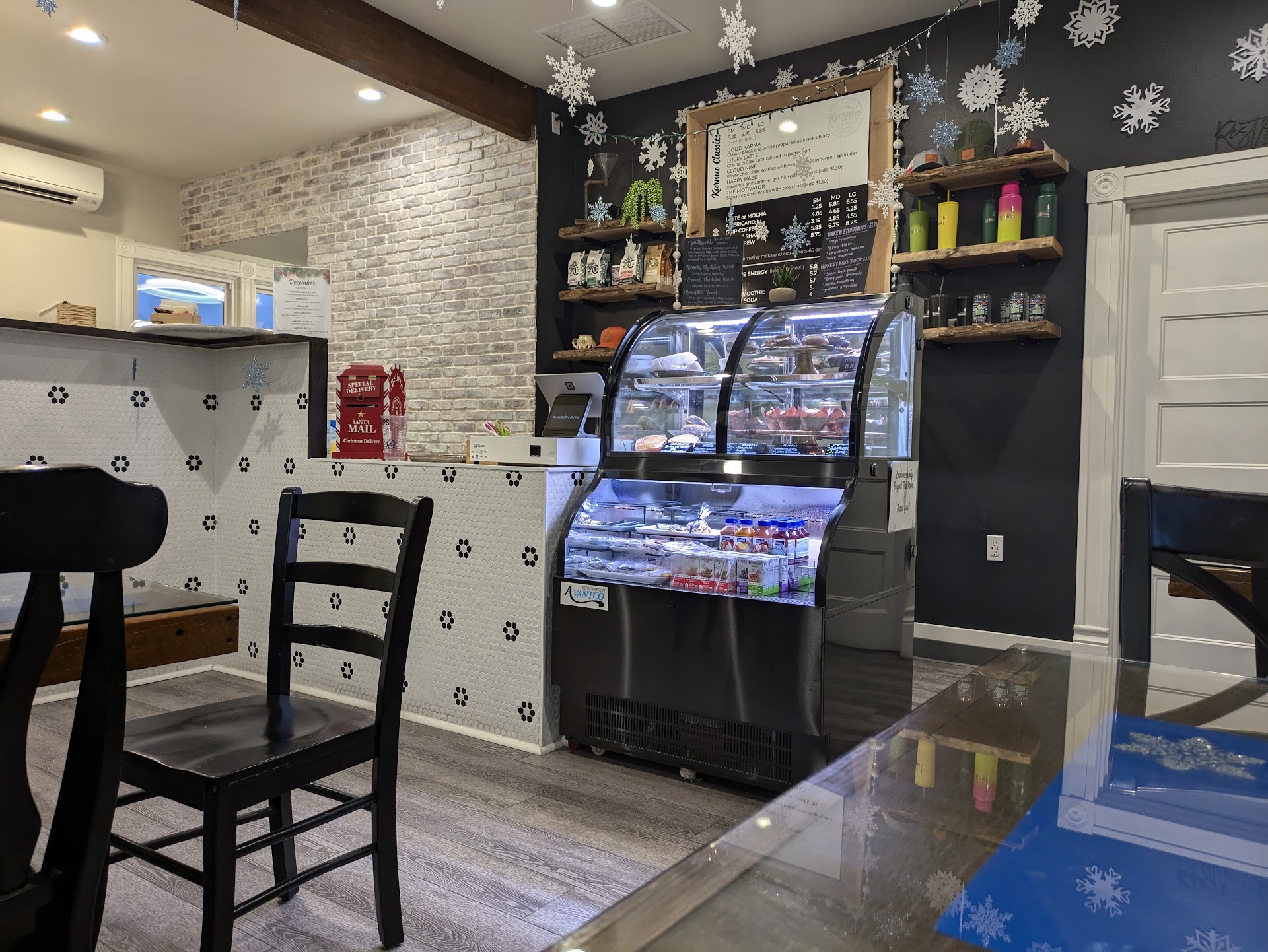 Happy music and pretty decorations. Everything looks well organized and clean. The temperature inside is perfect even with it being below 50 degrees outside.