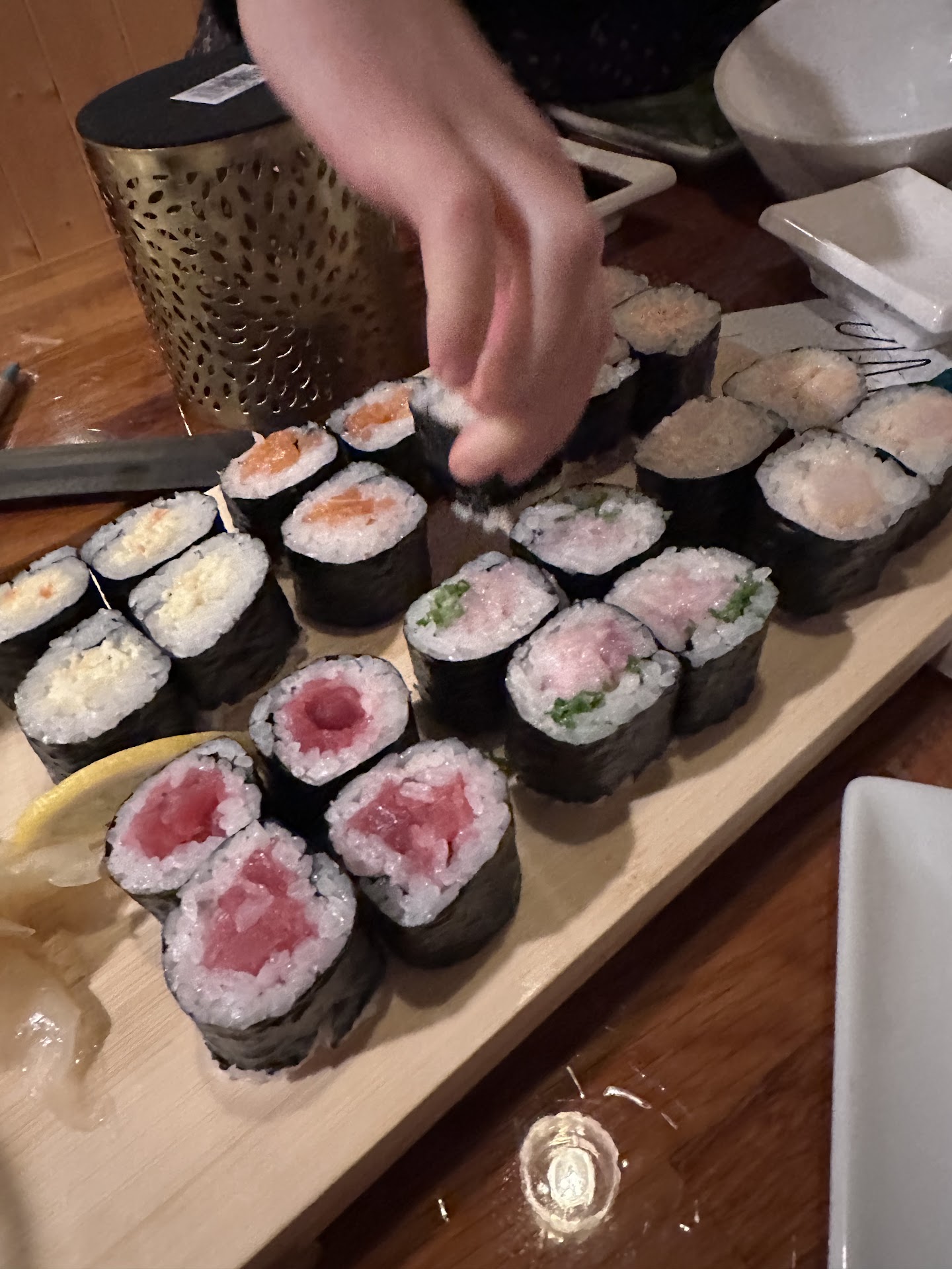 We ordered quite a bit. What you see in the pictures is half of a regular portion except for the special plate. They are not full-size rolls. Each handroll equals 2 pieces of sushi.