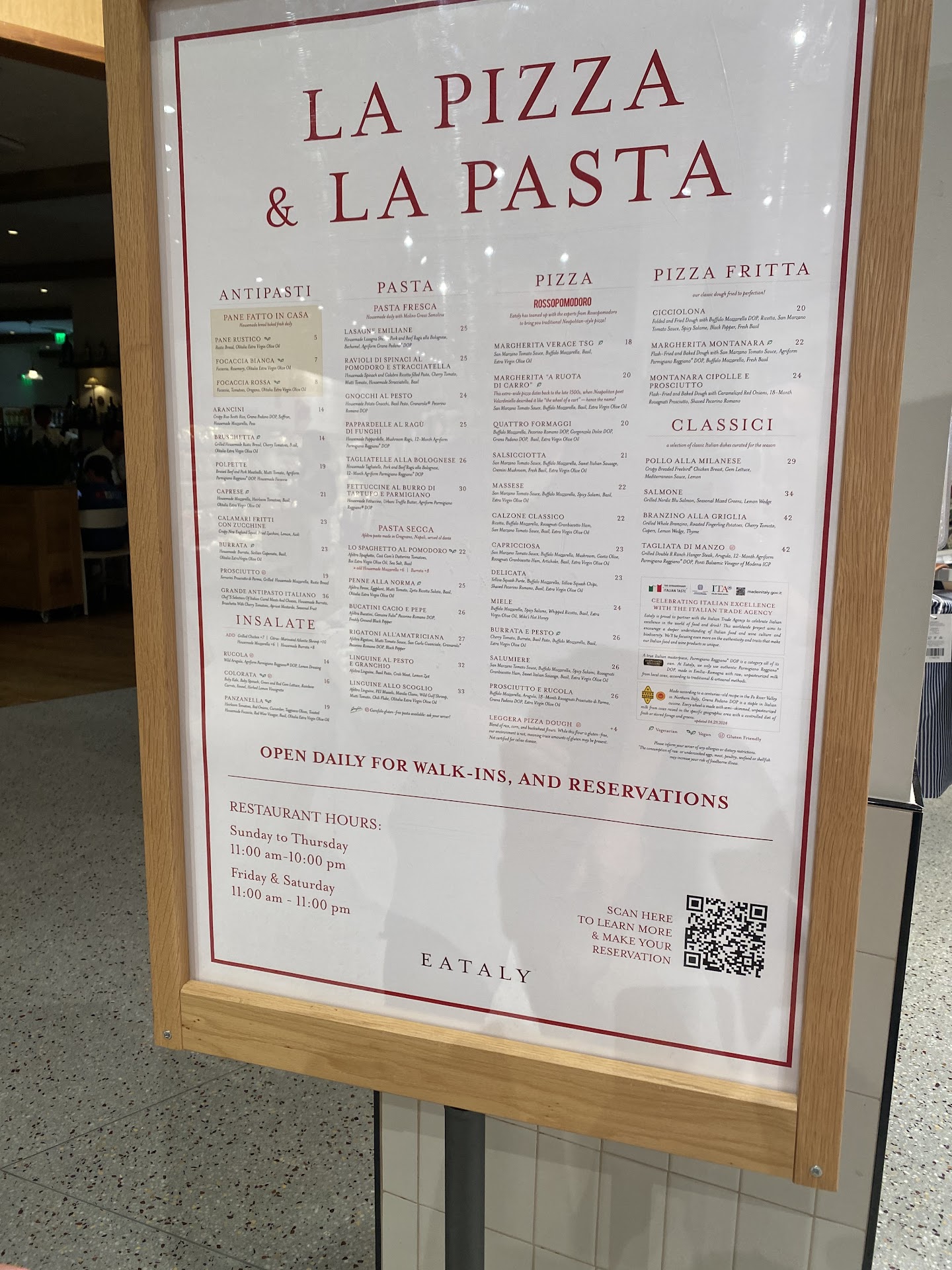 Read moreThis was our second time dining at La Pizza & La Pasta inside Eataly Dallas. Our first visit was great â the food, service, and overall experience impressed us enough that we decided to bring our cousins along for a return visit. Unfortunately, this visit didnât live up to expectations.