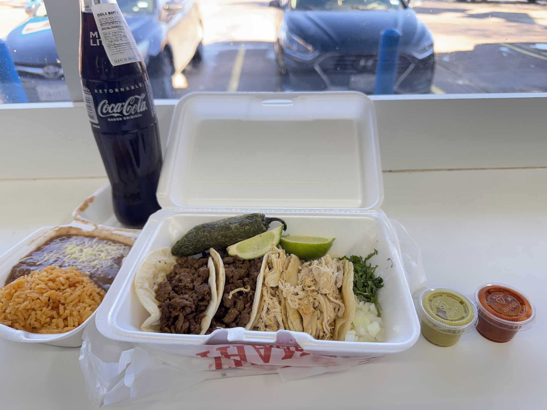 From St Louis and didn’t get in town until like, 8:30pm… Was hungry and wanted something fast and good… Well, almost right next to the hotel was this little Mexican Restaurant by a Gas Station…. Everyone had doubts about it but just looking at the pics people put on google, it didn’t look bad to Me… We walked over and found out it’s run by a family and the crowd were the local hispanics….Always a good sign.. I felt bad for not being good at Spanish, but we got by and got what we wanted… So, the Tacos were very good and one of us got the Chicken quesadilla and it was just as good too.. Some of us got the Tacos with the flour tortillas and I got them with the Corn tortillas… The Salsa Verde was good, flavorful and yet quite mild… The Salsa Rojo was good and flavorful but if you can’t take the heavy heat this produces, might just put a few drops on, cause that’ll put a burn on your tongue… Seating is limited but the 5 of us got to sit, cause of the time, probably… All in all, for a Gas Station Taco Joint, it’s better and a lot less expensive than the Mexican Restaurants here in Dallas we’ve been to in the past.. Prices are reasonable cause with 5 adults getting 3 plates and the rest 5 tacos with a few sodas, it was under $50.. Not bad for getting great food next to a Gas Station… Check them out,...