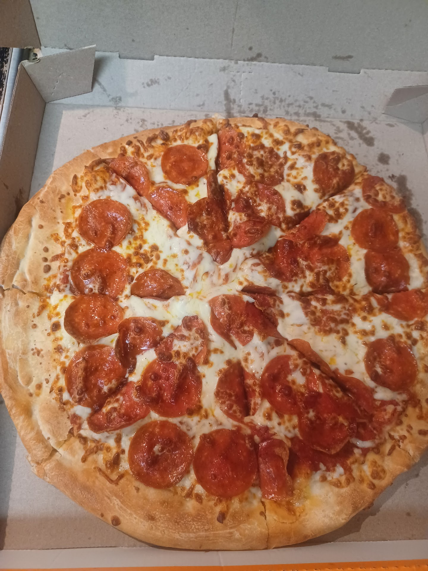 CAVIAT EMPTOR: This review is for people who remain aware of what they are eating and not just shoving food in their mouth. This place does not cook the regular pizza crust orders fully. I have tried to give them a chance and after a year of waiting to see if their service has changed, me and my family had severe stomach issues after eating their pizza. Smh pizza is supposed to be properly cooked due to the raw ingredients in the dough let alone the toppings! So when it comes to this place, caviat emptor is what you meed to bear in mind my good people. If you order a pizza with their regular crust, test it before you leave. If you press your finger into the back of the pizza and after you lift your finger, the bread dips in and doesn't pop back out, then your pizza is NOT fully cooked. You will be literally just eating some warm dough. If thats your thing lol hey go for it.