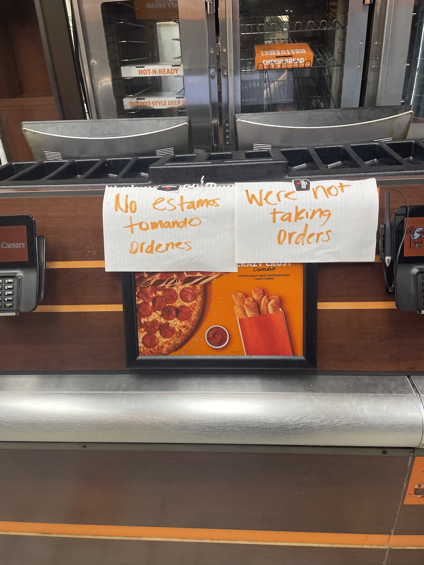 ย ย ย Read moreThis place used to be good. While the pizzas are still ok the crazy bread and staff are another story. I used to go here a couple of times a week and everything was fine but a few months ago something changed. I'm not sure if it is the "why are you bothering me" staff attitude or what. They usually just stare at you while you decide and place your order..if youre lucky they will barely give you any kind of greeting, maybe a "hi". Lastly, I LOVE Crazy Bread. I crave it at times and have stopped multiple times just for some. But here they decided to just cut up overcooked pizza dough and throw it in the bag. Little to no garlic oil or parmesan. It is extremely disappointing. I even expressed the fact to one worker in a nice manner, and she ensured me it was good because she made that batch herself. Of course it wasn't and I was let down once again. If you are anywhere near the location on Coit in Richardson or NW HWY in Dallas, go to them instead. Tonight will be the last night I will visit...